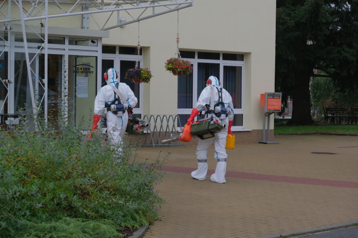 Čtyři desítky profesionálních a dobrovolných hasičů se zapojily ve čtvrtek po poledni (1.10.2020) do důkladné preventivní desinfekce Domova s pečovatelskou službou Slunečnice v Ostravě-Porubě, která je největším zařízením svého druhu v krajském městě. Z celkového počtu téměř čtyř stovek je pozitivních na koronavirus covid-19 jen několik klientů. Desinfekce bude trvat dva dny.