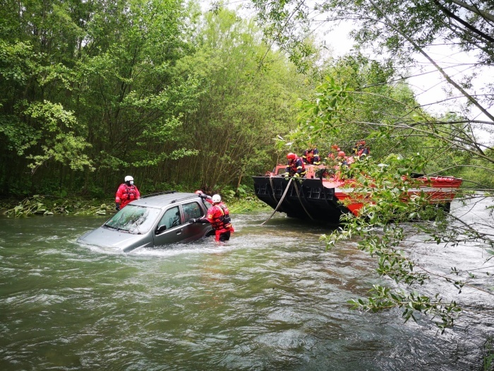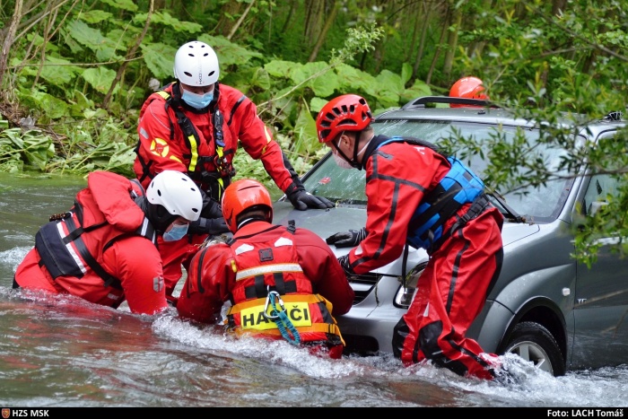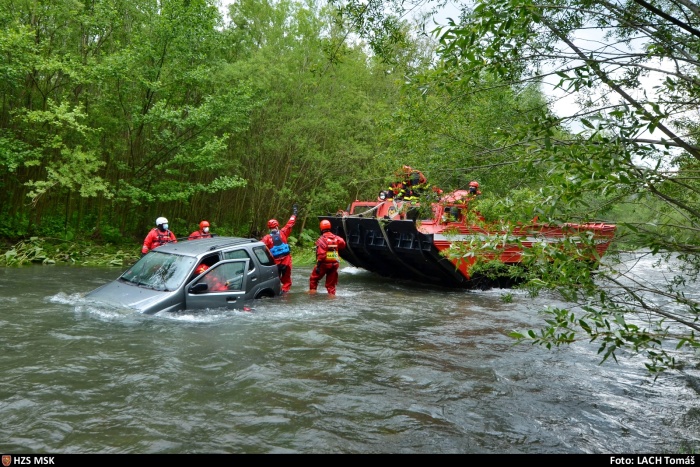 Čtyři jednotky hasičů se vystřídaly během dvou dní u nehody osobního automobilu Suzuki Ignis, jehož řidič si chtěl z nepochopitelných důvodů zkrátit cestu domů brodem přes rozvodněnou řeku Morávku u obce Raškovice na hranici s obcí Vyšní Lhoty (okres Frýdek-Místek). Vodohospodáři totiž právě upouštěli vodu z nedaleké přehrady Morávka po vydatných víkendových deštích…