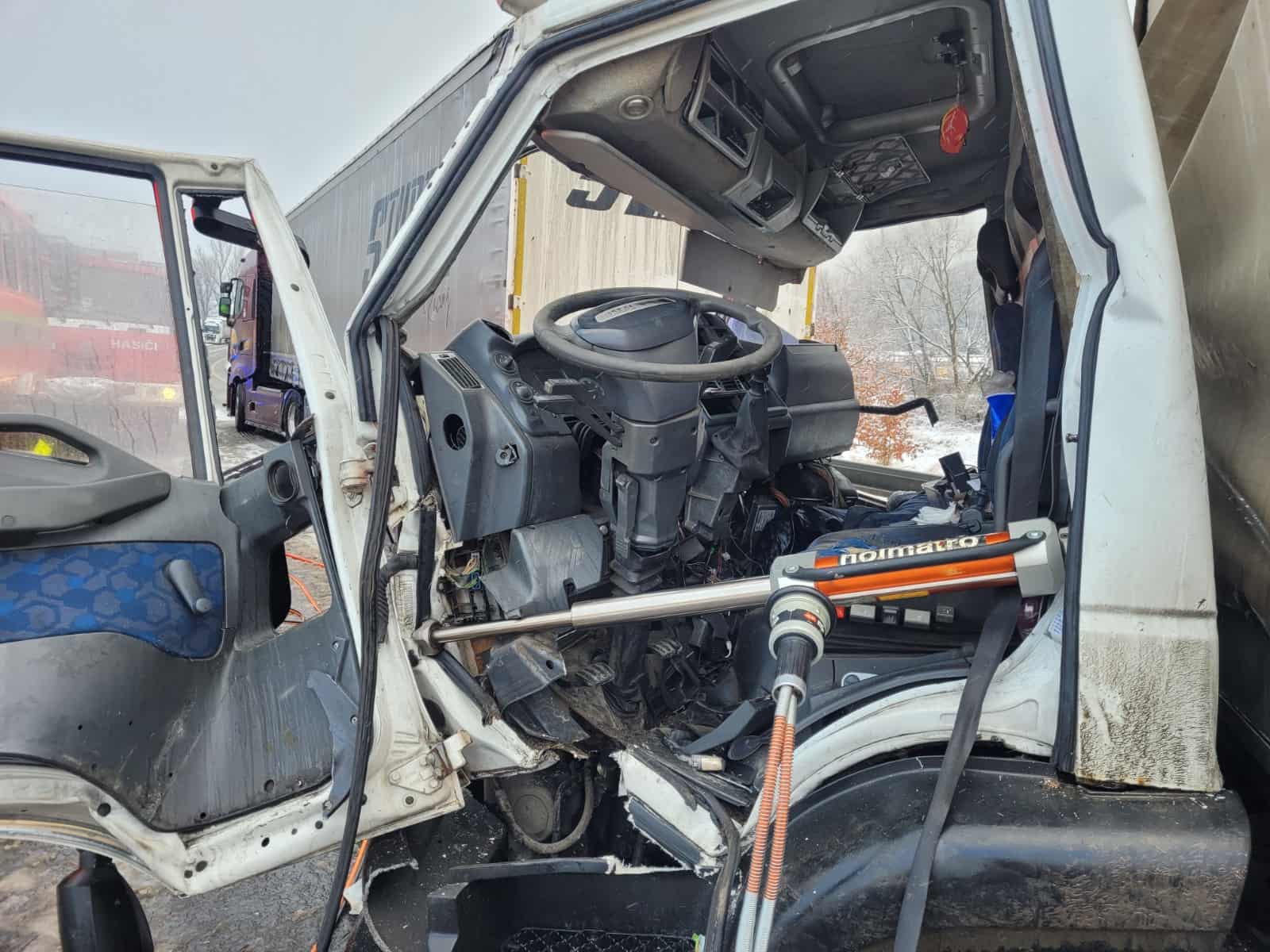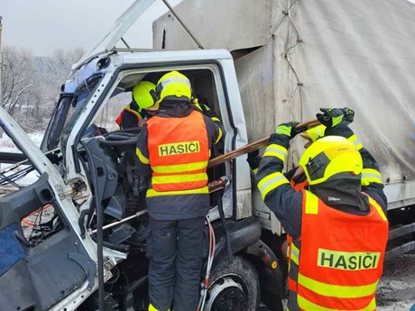 Zaklíněný řidič vyproštěn po nehodě dvou nákladních vozidel