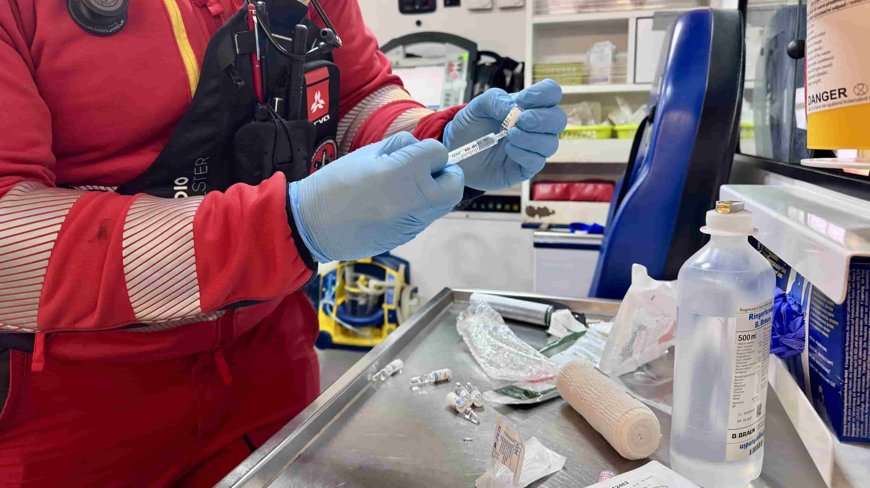 Po příjezdu složek integrovaného záchranného systému byl osmašedesátiletý muž již mimo hořící byt a v péči hasičů. Záchranáři okamžitě zahájili intenzivní léčbu, zajistili žilní vstupy, podali infuzní roztoky a ošetřili popáleniny. Vzhledem k podezření na zasažení dýchacích cest musel lékař použít video laryngoskop a pacienta zaintubovat. Následoval transport na umělé plicní ventilaci a příprava k leteckému převozu do specializovaného centra.