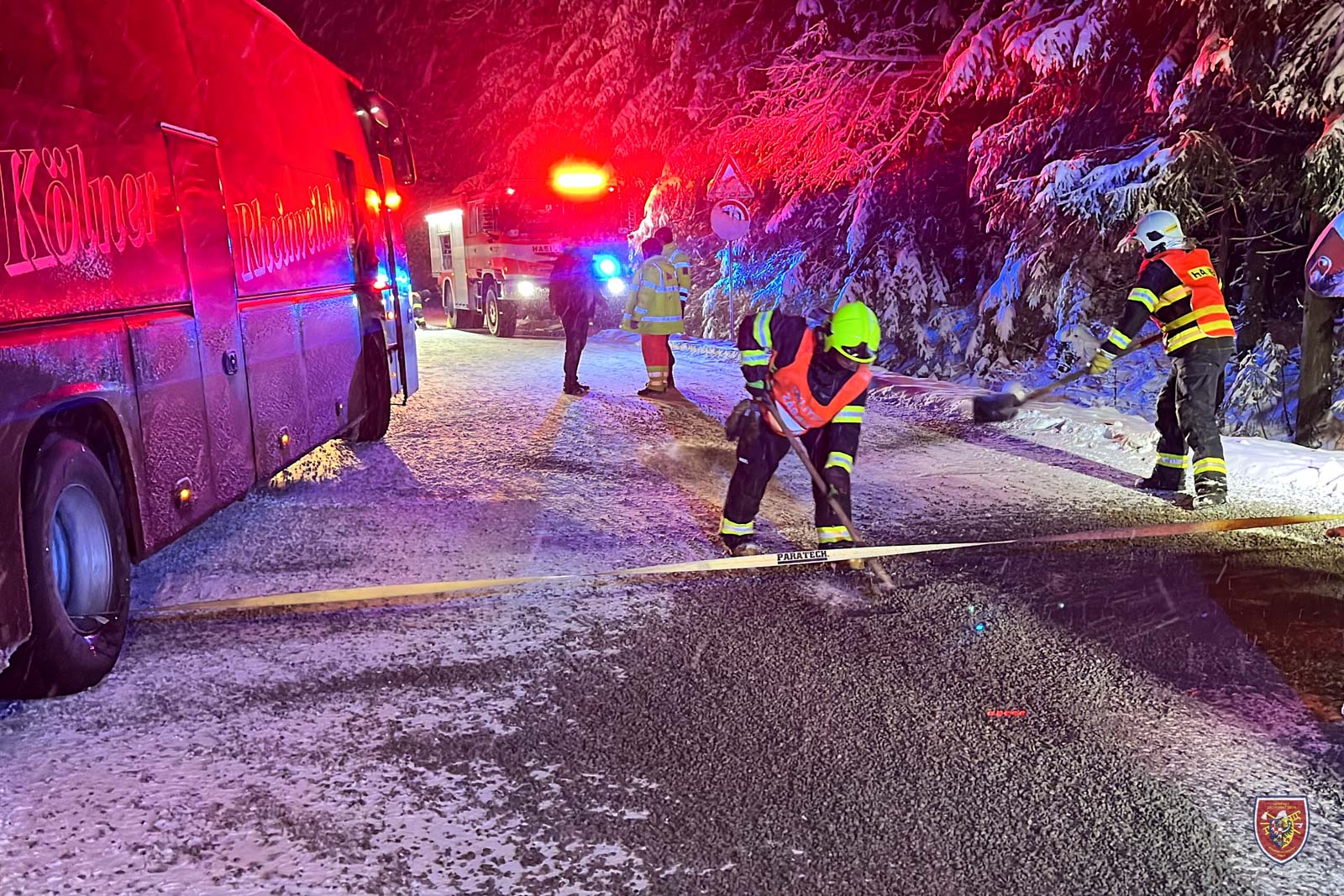 Za stejné období jsme v Moravskoslezském kraji řešili i téměř 20 dopravních nehod. Problémy mají jak osobní vozy, tak autobusy.