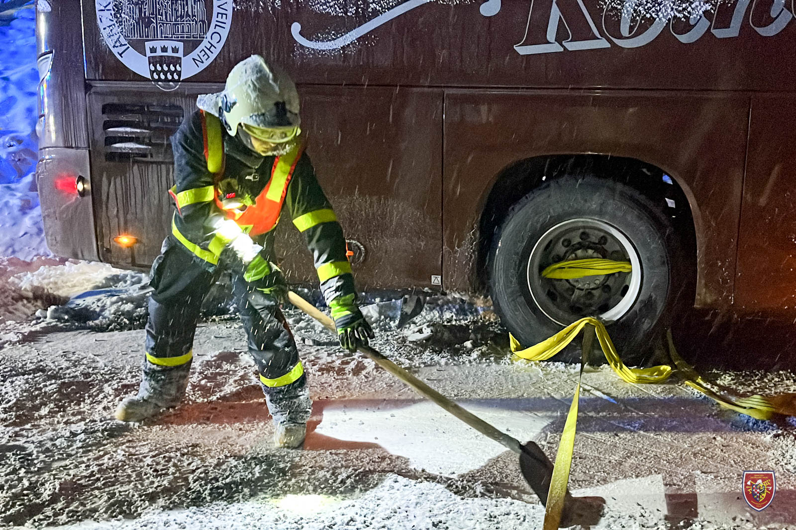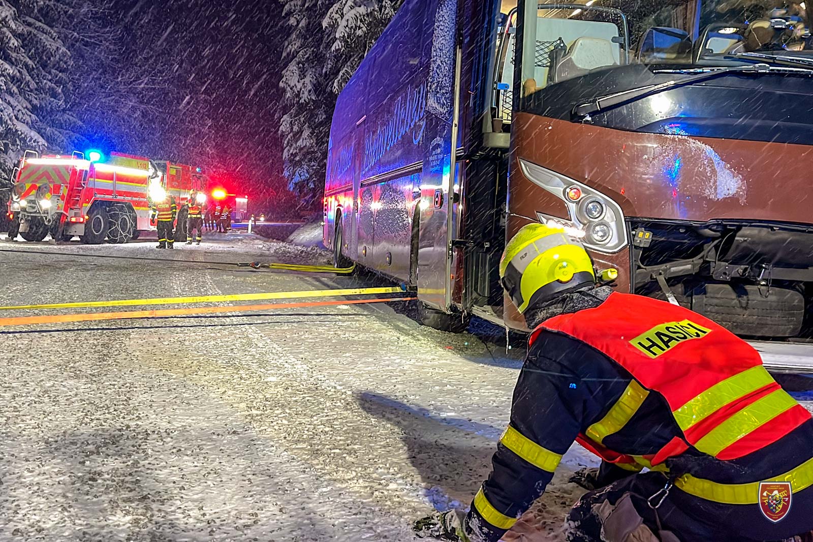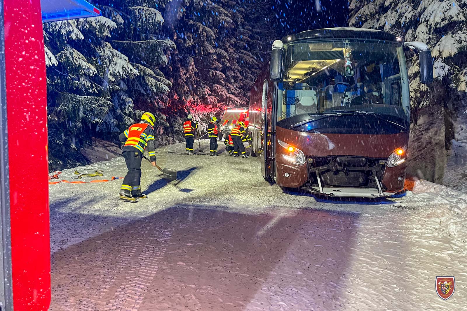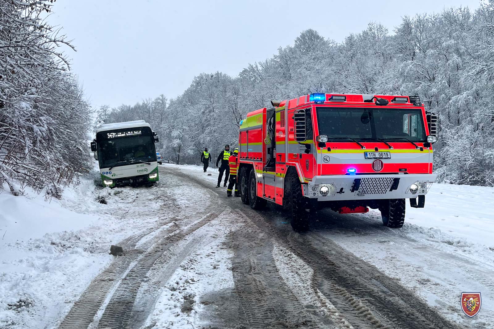 Jeden pomáhali hasiči vytáhnout z příkopu v Metylovicích na Frýdecko-Místecku, řidič v něm cestoval sám, nikdo nebyl zraněn. Hasiči autobus podložili dřevěnými hranoly a vytáhli ho silným navijákem vyprošťovací Tatry.