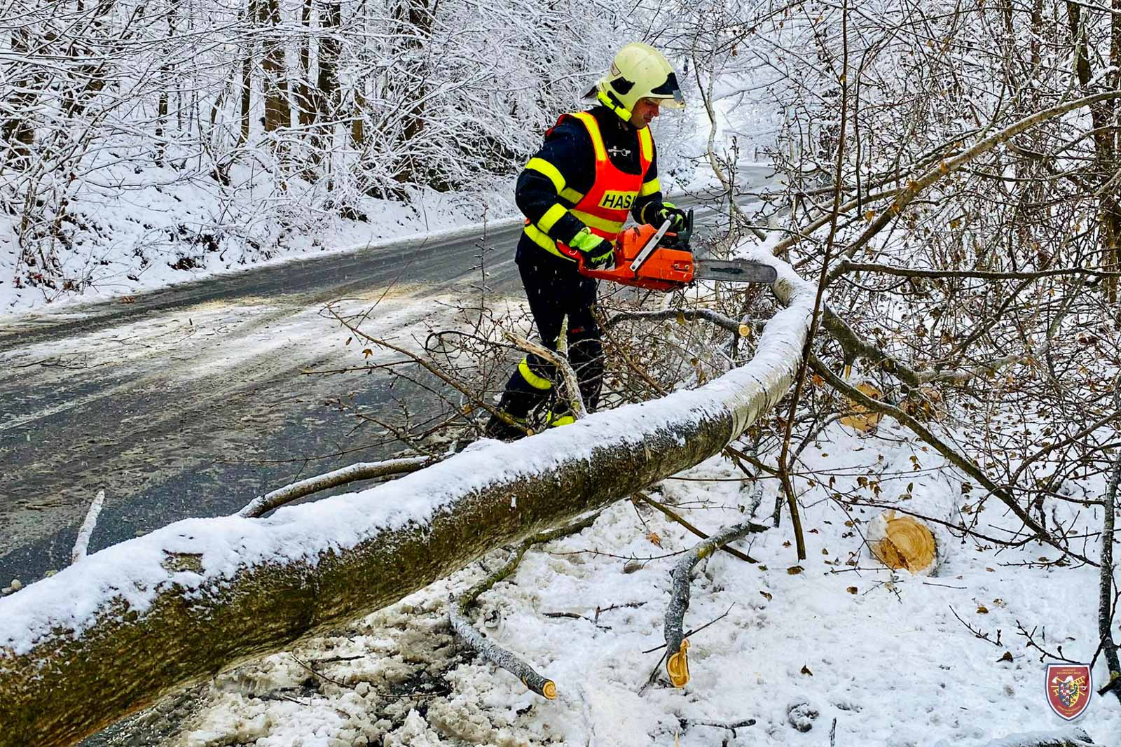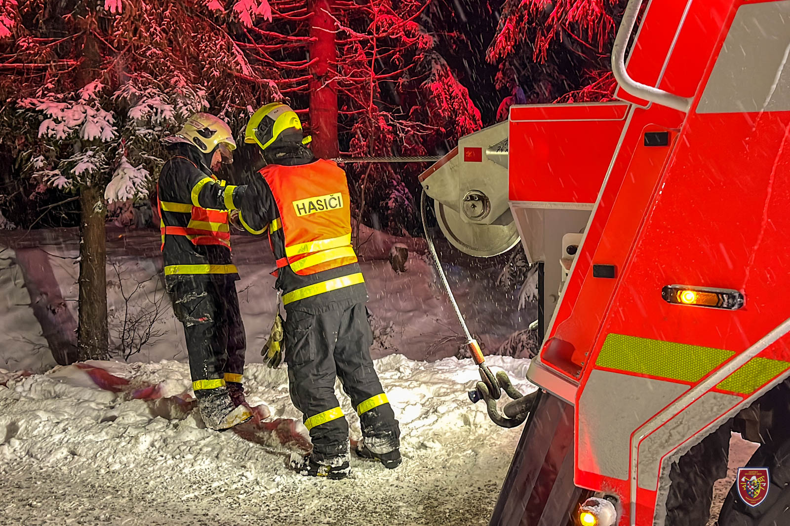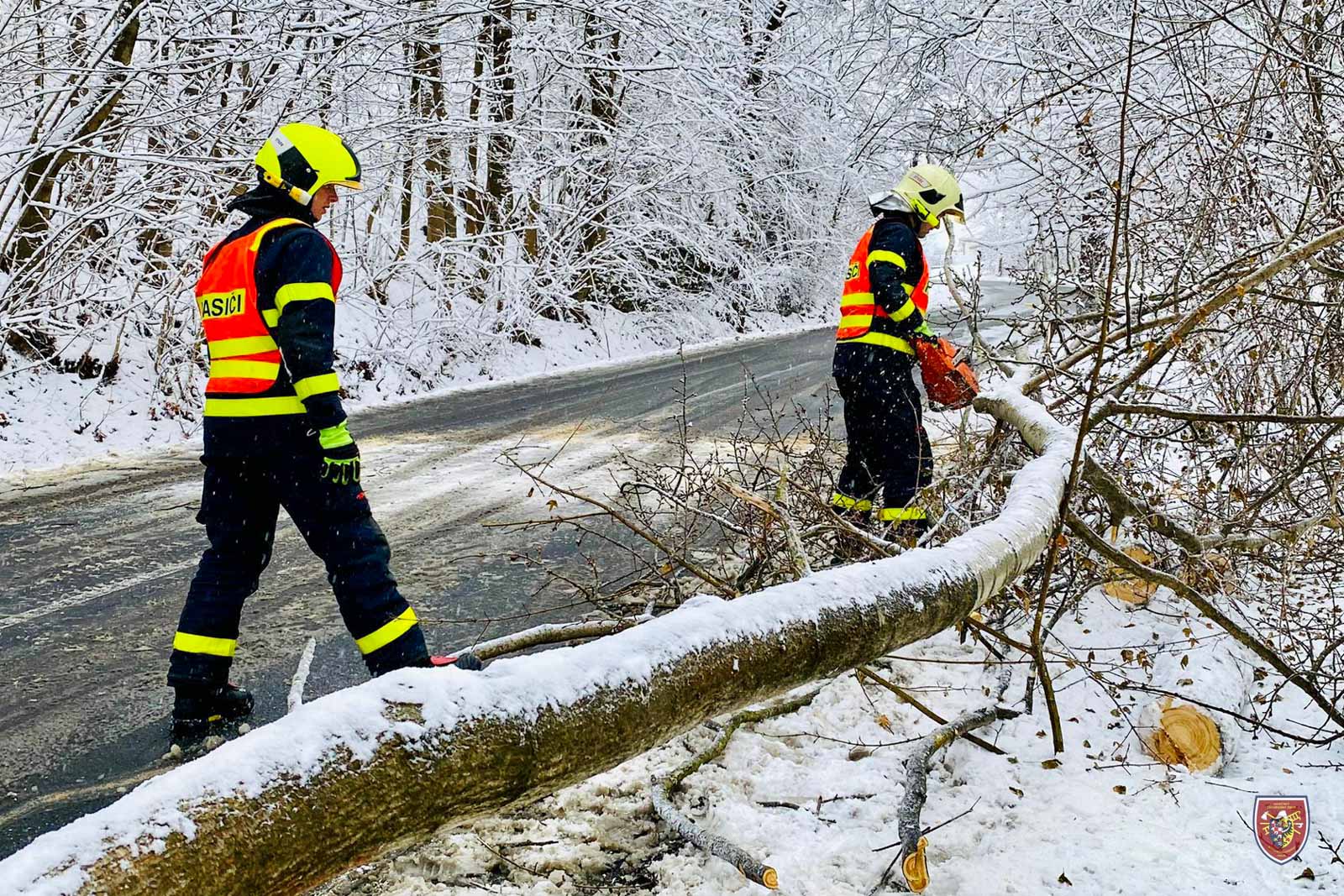 Zimní počasí přineslo větší množství zásahů u popadaných stromu, sníh komplikoval provoz