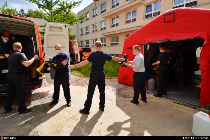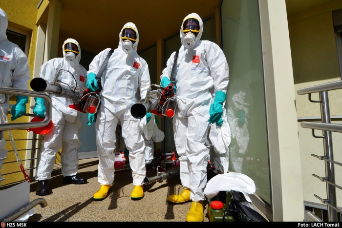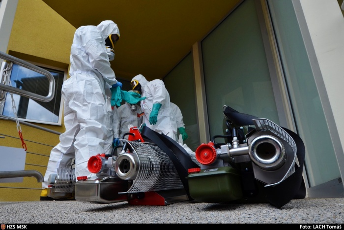 Dvě desítky profesionálních hasičů z Hasičského záchranného sboru Moravskoslezského kraje (HZS MSK) se zapojily ve středu  (20.5.2020) - kvůli nákaze koronavirem Covid-19 - do desinfekce tří oddělení Městské nemocnice Ostrava, respektive do budování zázemí pro tuto dekontaminaci. Pomocí generátorů horkého desinfekčního aerosolu úspěšně „vyčistili“ minimálně tři prázdná oddělení ve dvou podlažích – covidovou jednotku, jednotku intenzivní péče a geriatrii.