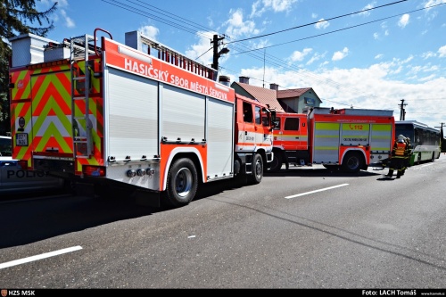 Tři jednotky hasičů zasahovaly v pondělí 2.7.2018 dopoledne v Šenově (okres Ostrava-město) u nehody autobusu s osobním automobilem, která si vyžádala zranění řidiče osobního auta. Hasiči asistovali při jeho ošetřování i transportu do vrtulníku LZS. Řidič autobusu vyvázl bez zranění. Oba řidiči jeli ve vozidlech sami.
