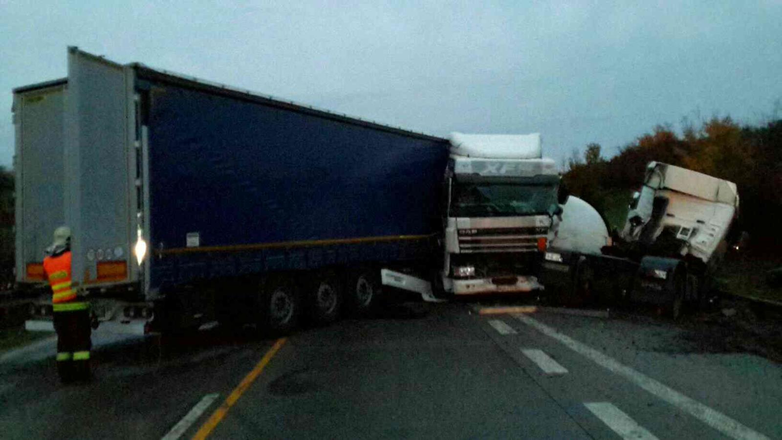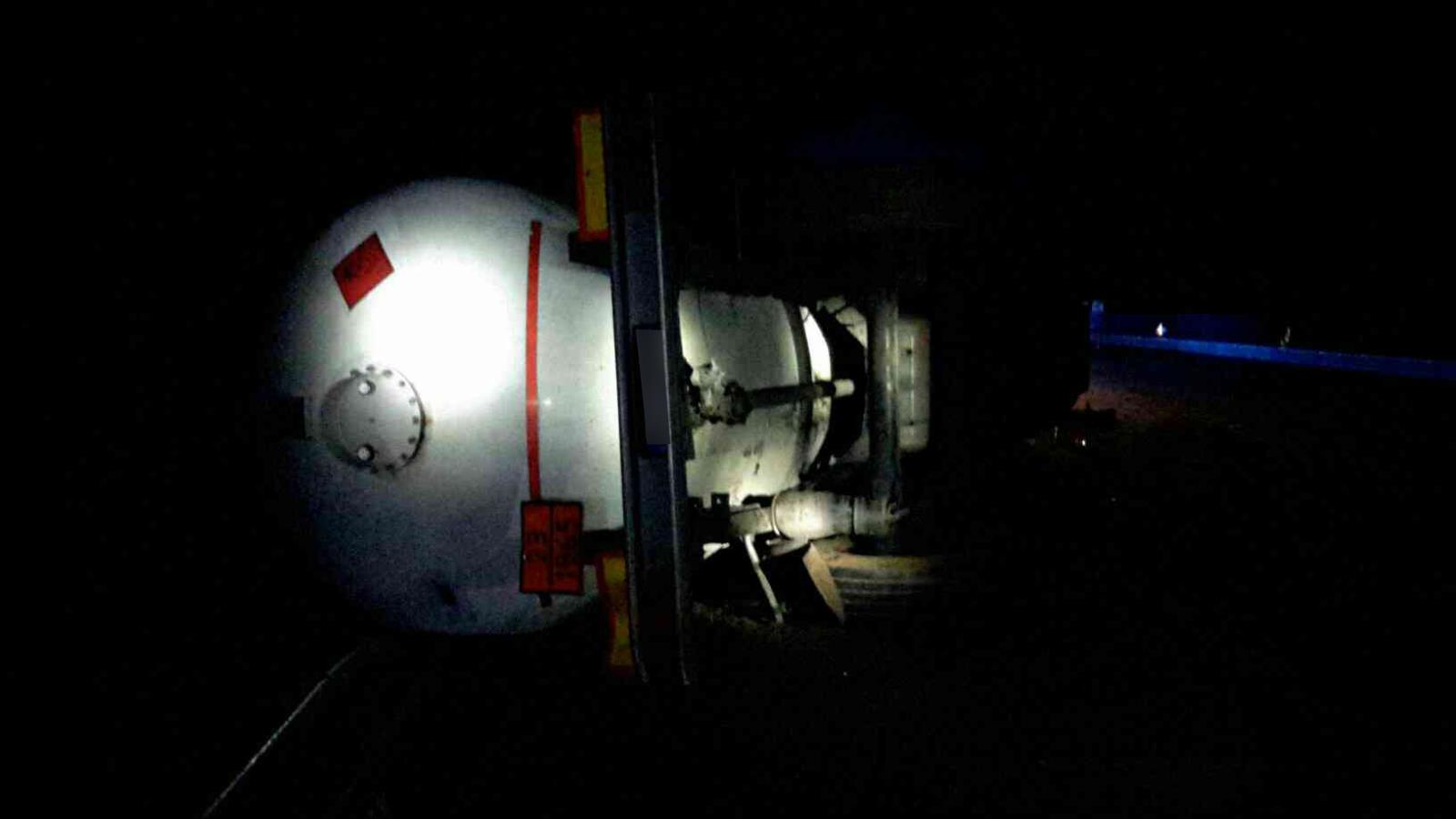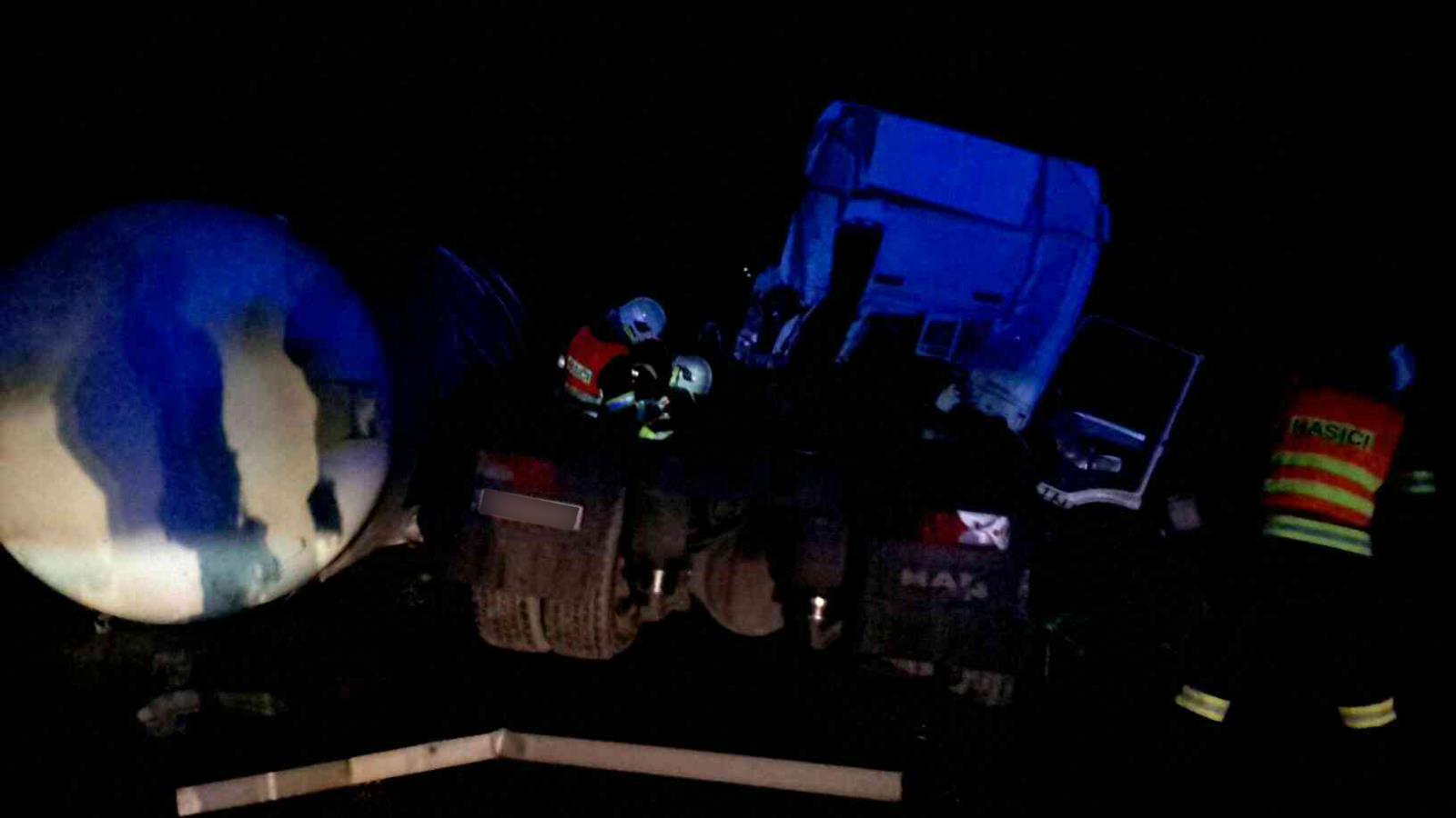 Na místo první nehody vyjeli profesionální hasiči z Olomouce, kteří po příjezdu zjistili, že cisterna převážející 22 tun LPG sjela mimo komunikaci a zůstala ležet na boku. Řidič byl nezraněn a pomohl hasičům odpojit tahač. Vzhledem k tomu, že z cisterny nic neunikalo, vrátili se hasiči po dohodě s policií na základnu s tím, že ráno se situace dořeší.