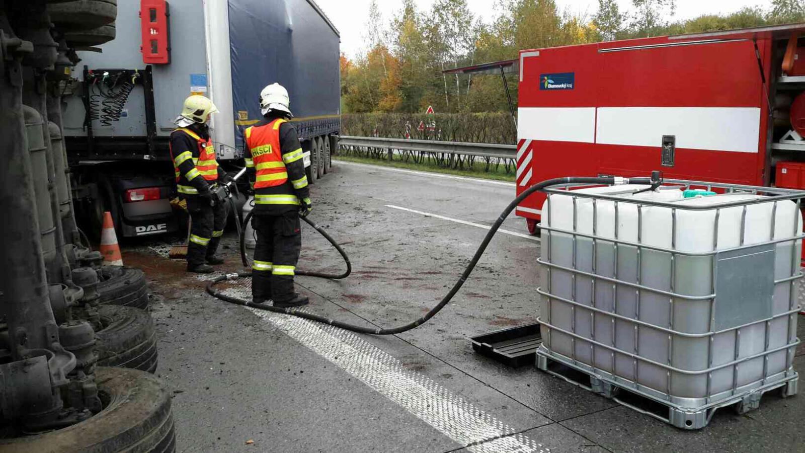 Jednotka profesionálních hasičů z Olomouce je stále na místě ranní nehody kamionu na D35. Specializovaná firma v současné době vyprošťuje havarovaný kamion s nábytkem. Druhé vyprošťovací vozidlo specializované firmy čeká na naše pokyny k tomu, aby mohlo vyprostit havarovanou cisternu.