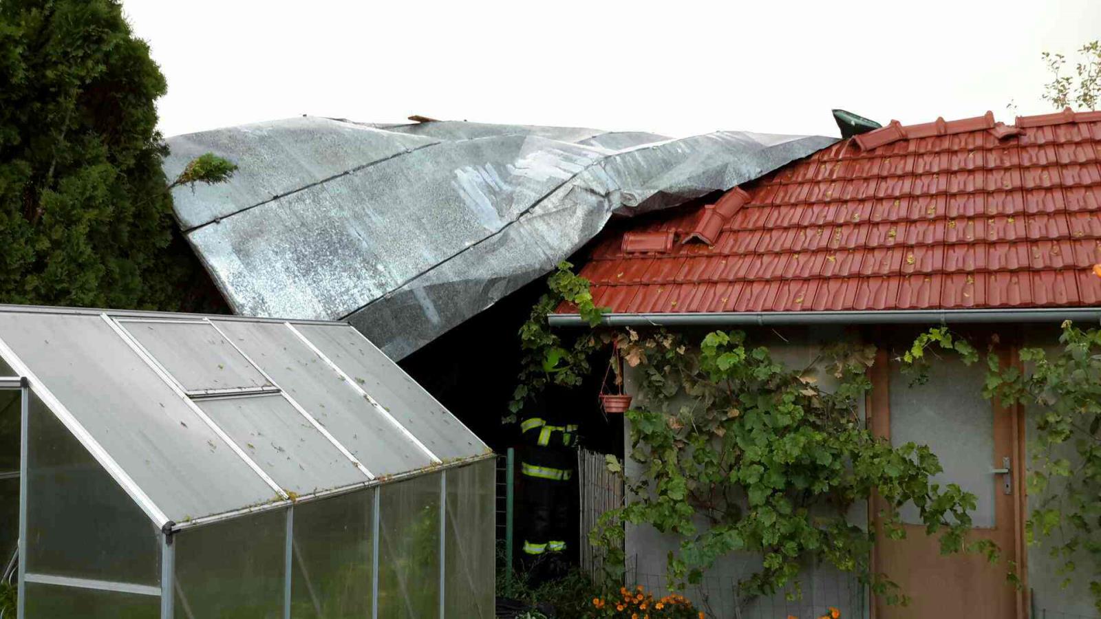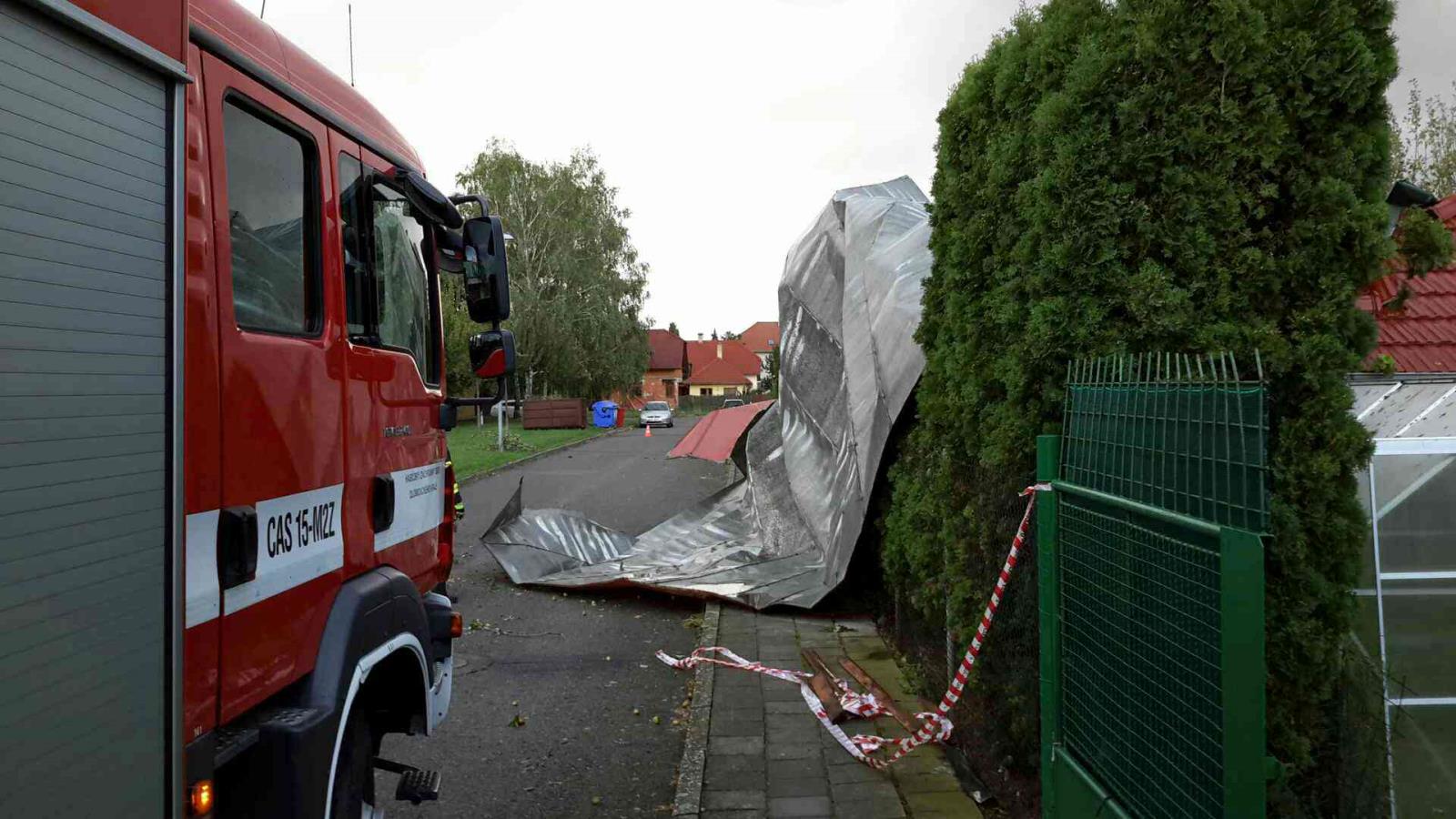 Likvidace spadlých střech pokračovala i v pondělí ráno. V Lipníku nad Bečvou na ulici Na Zelince se srolovala střecha garáží a odletěla na přístavek u rodinného domu, který částečně poškodila. V Hranicích na Šromotově náměstí se uvolnily plechy na střeše tělocvičny základní školy. Hasiči vyjeli na místo a střechu zajistili. Také v Olomouci - Holici zajišťovali hasiči střechu autoservisu.