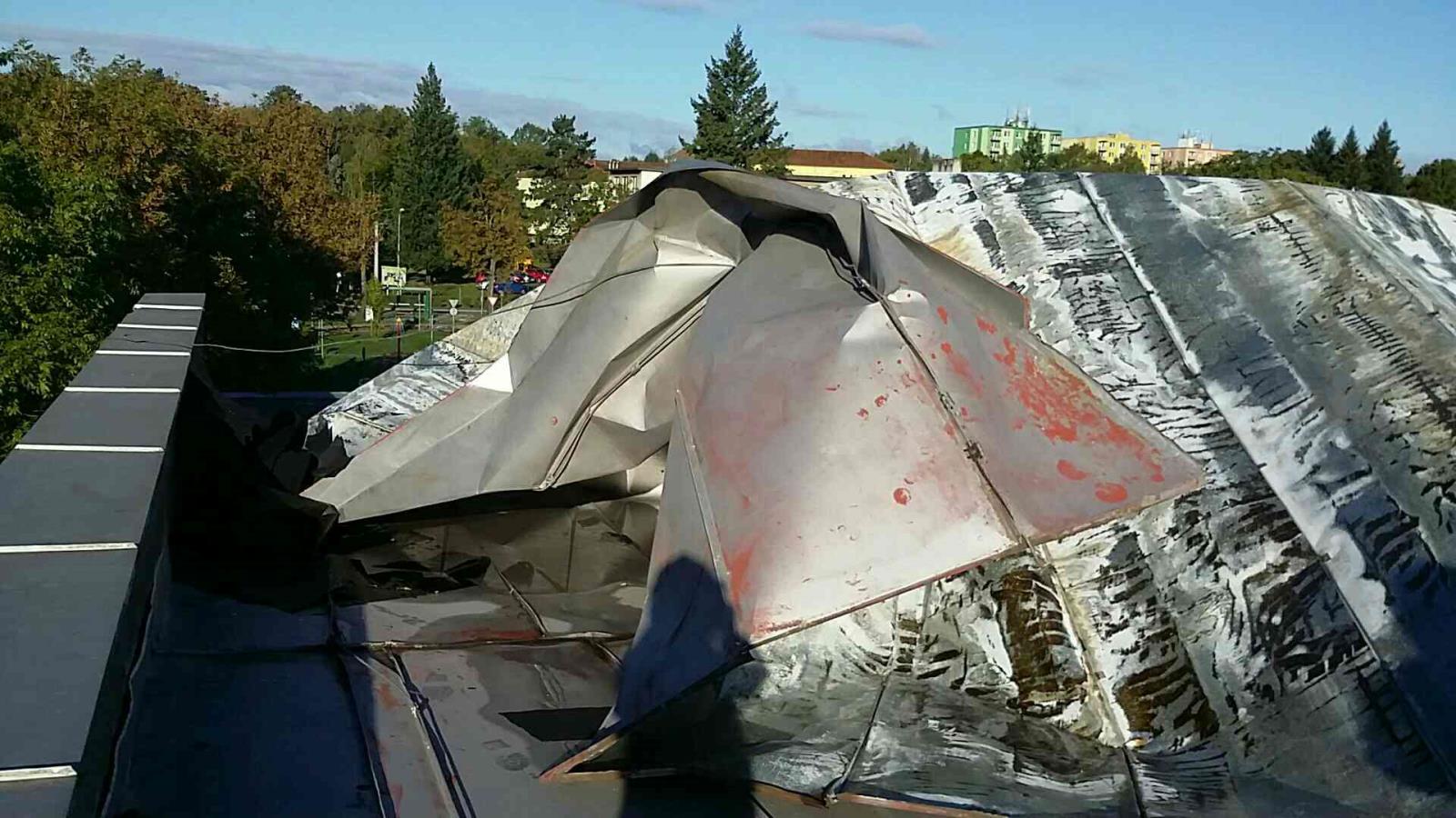 V několika případech také hasiči řešili uvolněné plechové střešní krytiny. Mezi větší noční události patřila uvolněná střešní krytina rodinného domu ve Štěpánově, která se srolovala, otočila a opřela o komín. Událost byla oznámena na operační středisko v 22:21 hodin. Hasiči po příjezdu střechu otočili zpět, pomocí plachty a latí ji provizorně zajistili. Střecha poškodila komín, proto ho majitel nemůže používat do doby opravy.