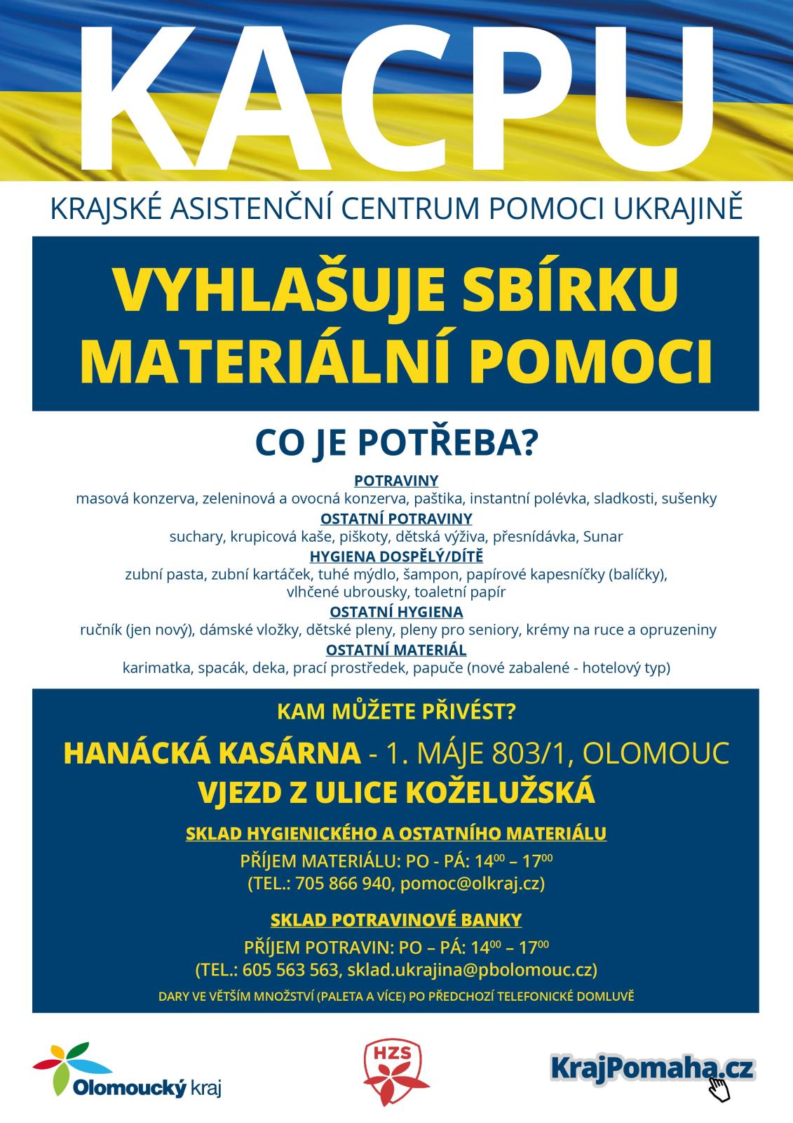 Sbírka humanitárního materiálu – od 7. března