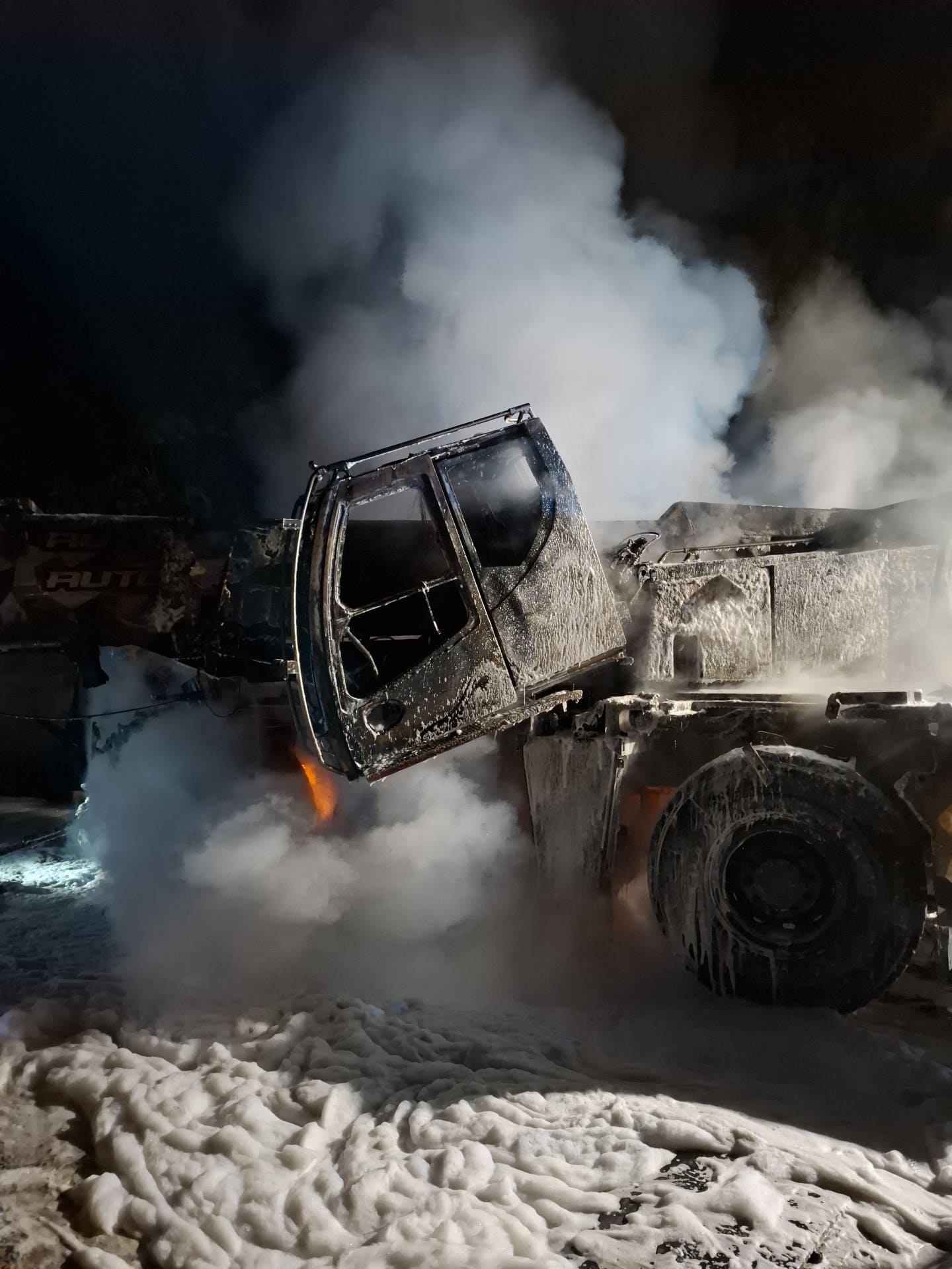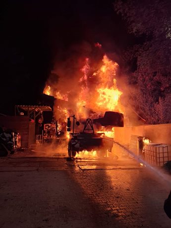 Požár byl nahlášen na operační středisko krátce před pátou hodinou ranní. V době příjezdu prvních jednotek byl jeřáb u motorestu Křepelka ve Skrbeni zcela v plamenech. Hasiči okamžitě nasadili dva vodní proudy a zasahovali v dýchací technice, protože hustý kouř se šířil do okolí.