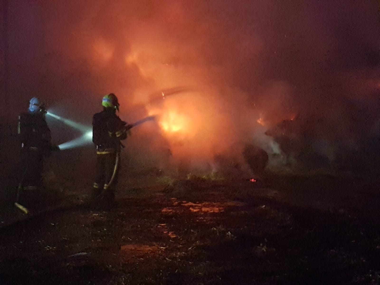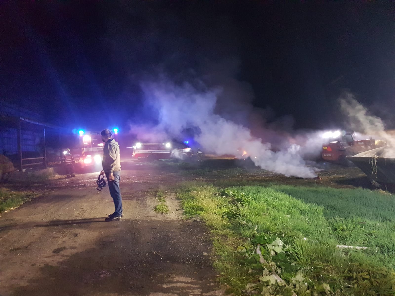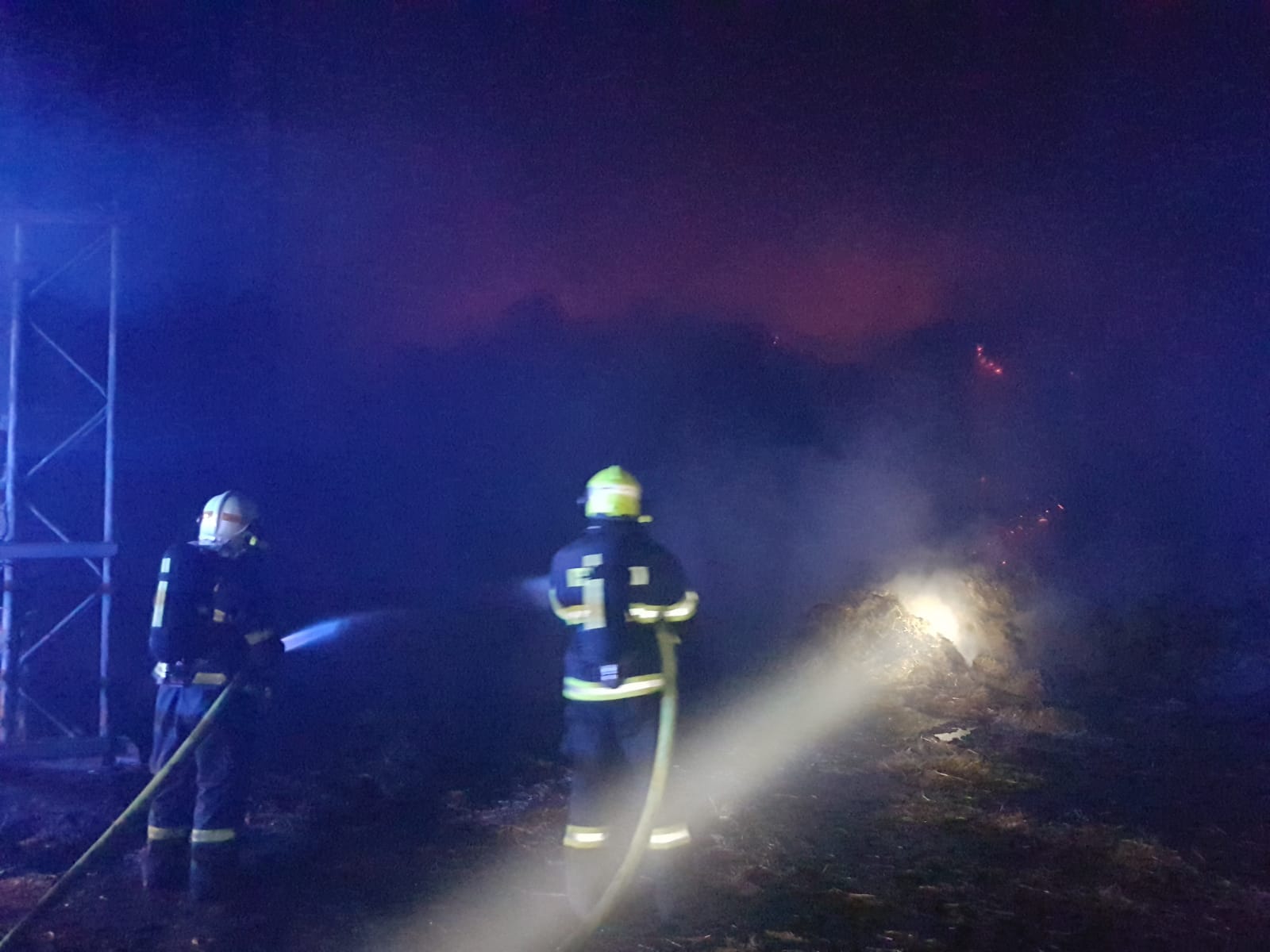 Druhý požár byl nahlášen na operační středisko ve 22.30 a oznamovatel popisoval, že vidí oheň mezi Mladějovicemi a Hnojicemi. Na místo postupně vyrazilo 10 jednotek ve II. stupni požárního poplachu. V zemědělském areálu hořel sklad sena. Půlka objektu o rozloze zhruba 60x15 metrů byla při příjezdu hasičů v plamenech. Jednotky ihned zahájily hašení a zároveň bránily druhou část budovy, aby se oheň nerozšířil i tam. Zřídili jsme kyvadlovou dopravu vody a využili jsme nedalekého rybníka.