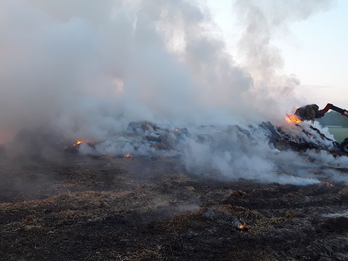 S pomocí dvou nakladačů jsme postupně vyváželi ohořelý materiál na pole, abychom jej zde mohli rozhrnout a dohasit. Během požáru jsme termokamerou kontrolovali teplotu nosných kovových konstrukcí a ochlazovali je, abychom předešli jejich zhroucení, což se podařilo. Nyní na místě stále probíhají dohašovací práce. V pondělí ráno se vystřídaly zasahující jednotky. Škodu jen na balících sena odhadujeme na 200 tisíc korun. Příčinu požáru budeme vyšetřovat po skončení hasebních a likvidačních prací ve spolupráci s PČR.