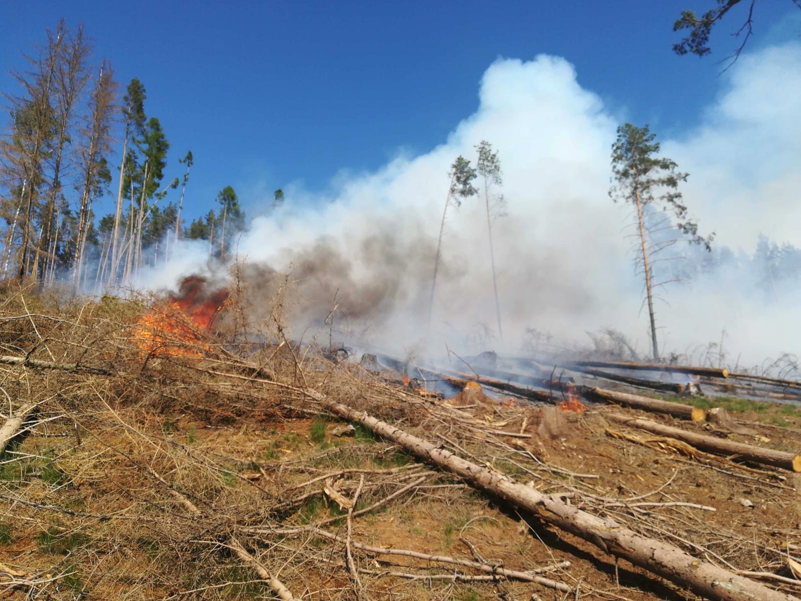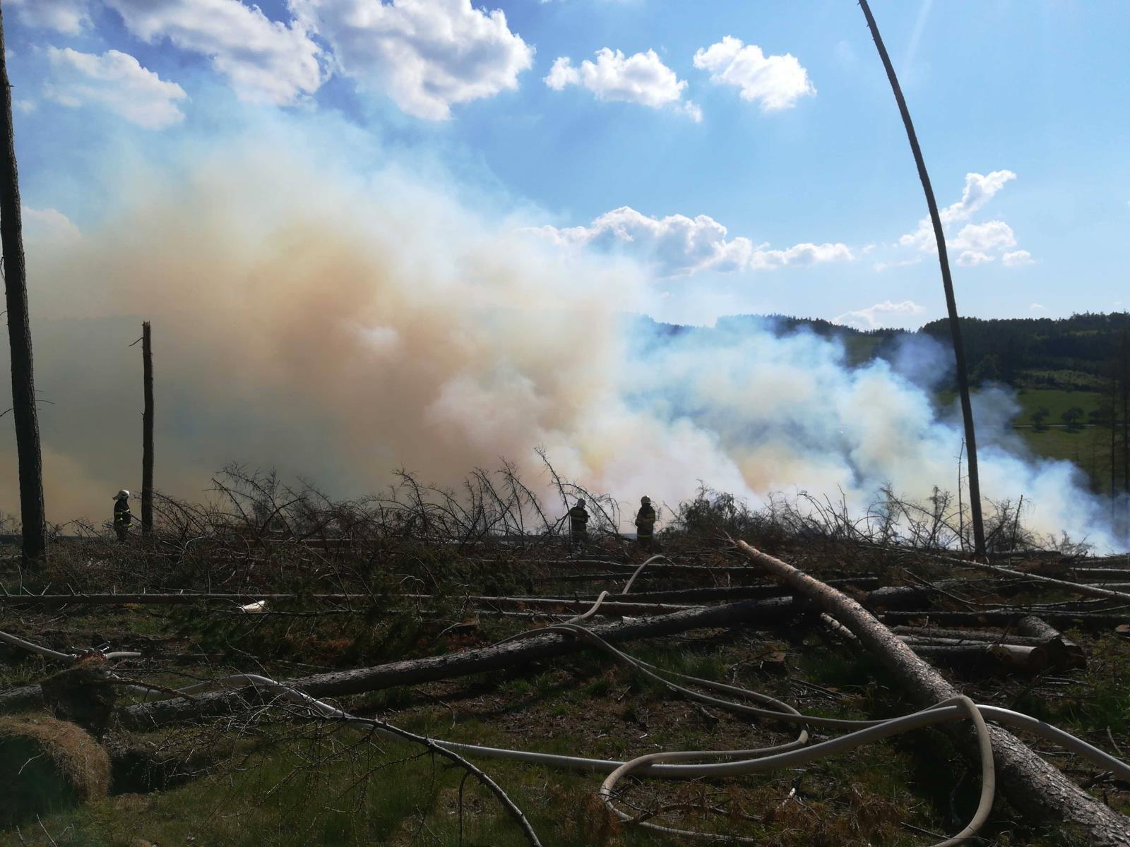 Nejdříve jsme vyjížděli k požáru mýtiny nedaleko Luké na Olomoucku. V neděli odpoledne zde začal hořet porost v nepřístupném terénu ve svahu velmi blízko lesa. Hasiči postupovali přímo proti požáru, aby zabránili jeho šíření do lesa. Vyhlásili jsme II. stupeň požárního poplachu a operační důstojníci vyslali na místo další jednotky. Zásah komplikoval vítr, nepřístupný terén, v němž se složitě pohybovala naše technika, i hustý dým.