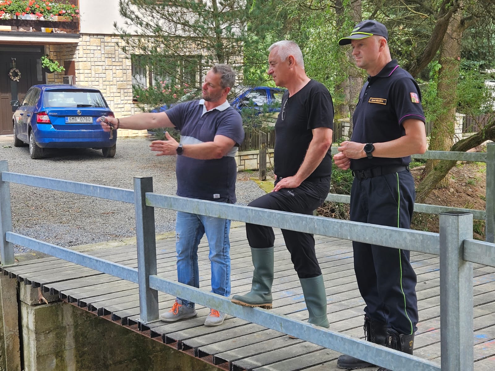Zhruba v polovině z nich jsme během pátku a víkendu čerpali vodu a pomáhali s likvidací největší spouště. Situaci zkomplikovaly další bouřky, které lokalitu zasáhly znovu v neděli vpodvečer. V některých obcích tak zasahujeme i dnes. Zasažené vsi navštívil krajský ředitel brig. gen. Ing. Karel Kolářík s hejtmanem Olomouckého kraje Ing. Josefem Suchánkem. Setkali se zde s řídícím důstojníkem územního odboru Přerov mjr. Ing. Leošem Janáčkem, který záchranné a likvidační práce v lokalitě řídil, a s místními starosty.