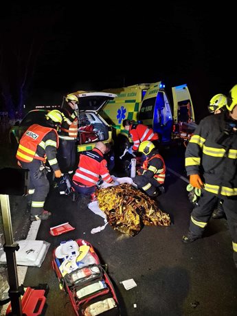 Další dvojici museli hasiči vyprostit odstřižením zadních dveří a sloupků karoserie. Po zajištění páteře byly osoby vytaženy na páteřní desce a předány do péče Zdravotnické záchranné služby. Zranění jsou předmětem lékařského ošetření, stav zraněných zatím nebyl blíže specifikován.