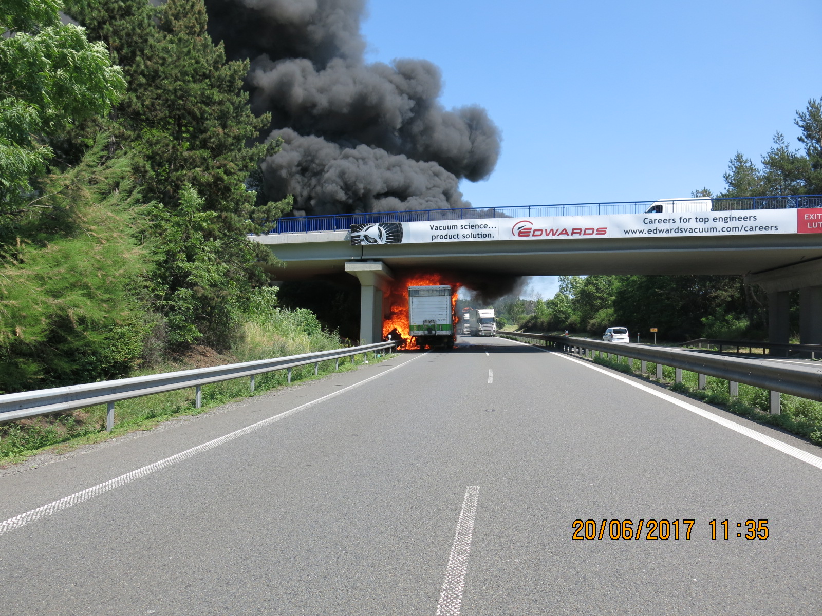 V úterý 20. června 2017 byl v 11:30 hodin oznámen na operační středisko HZS Olomouckého kraje požár kamionu na 27. km dálnice D46 z Olomouce na Prostějov.
