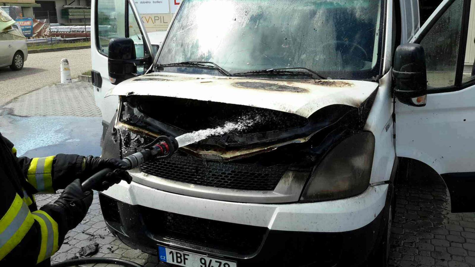 Požár dodávkového vozidla v Olomouci, U pekárny.