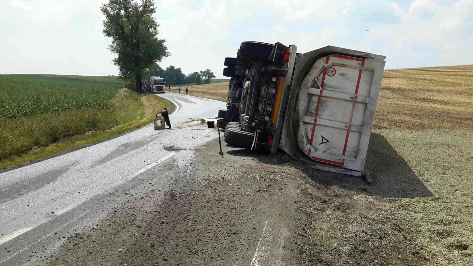 K dalšímu převrácenému nákladnímu vozidlu vyjížděla jednotka požární stanice Olomouc v pátek 27.7.2018 krátce před polednem. Oznámení o nehodě převzalo operační středisko HZS Olomouckého kraje s upřesněním úseku místa události mezi Křelovem a místní části Olomouce Topolany.