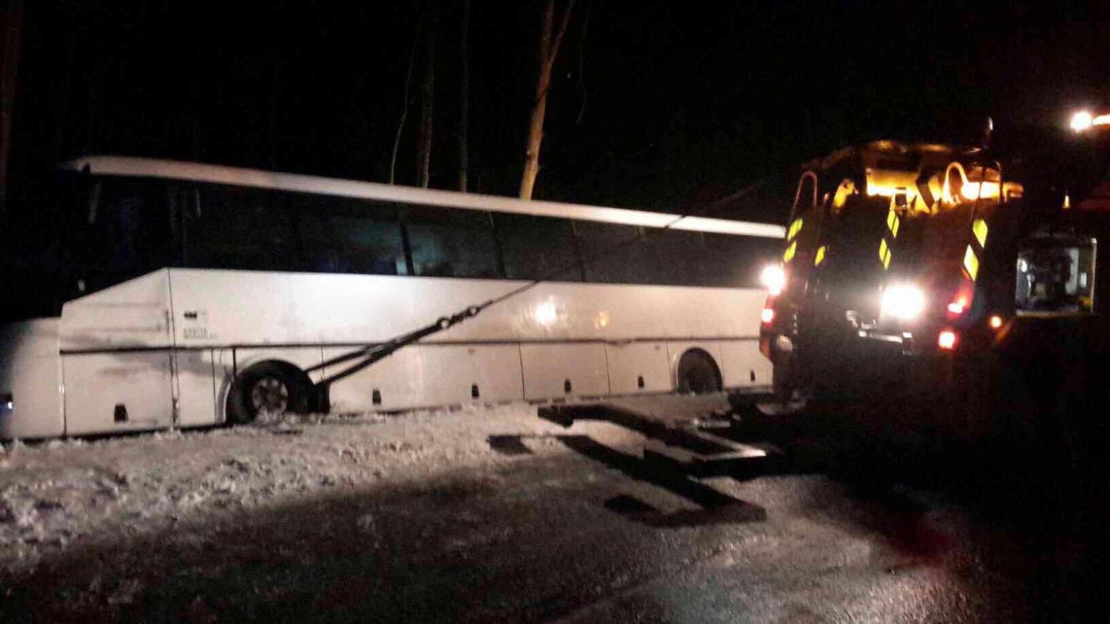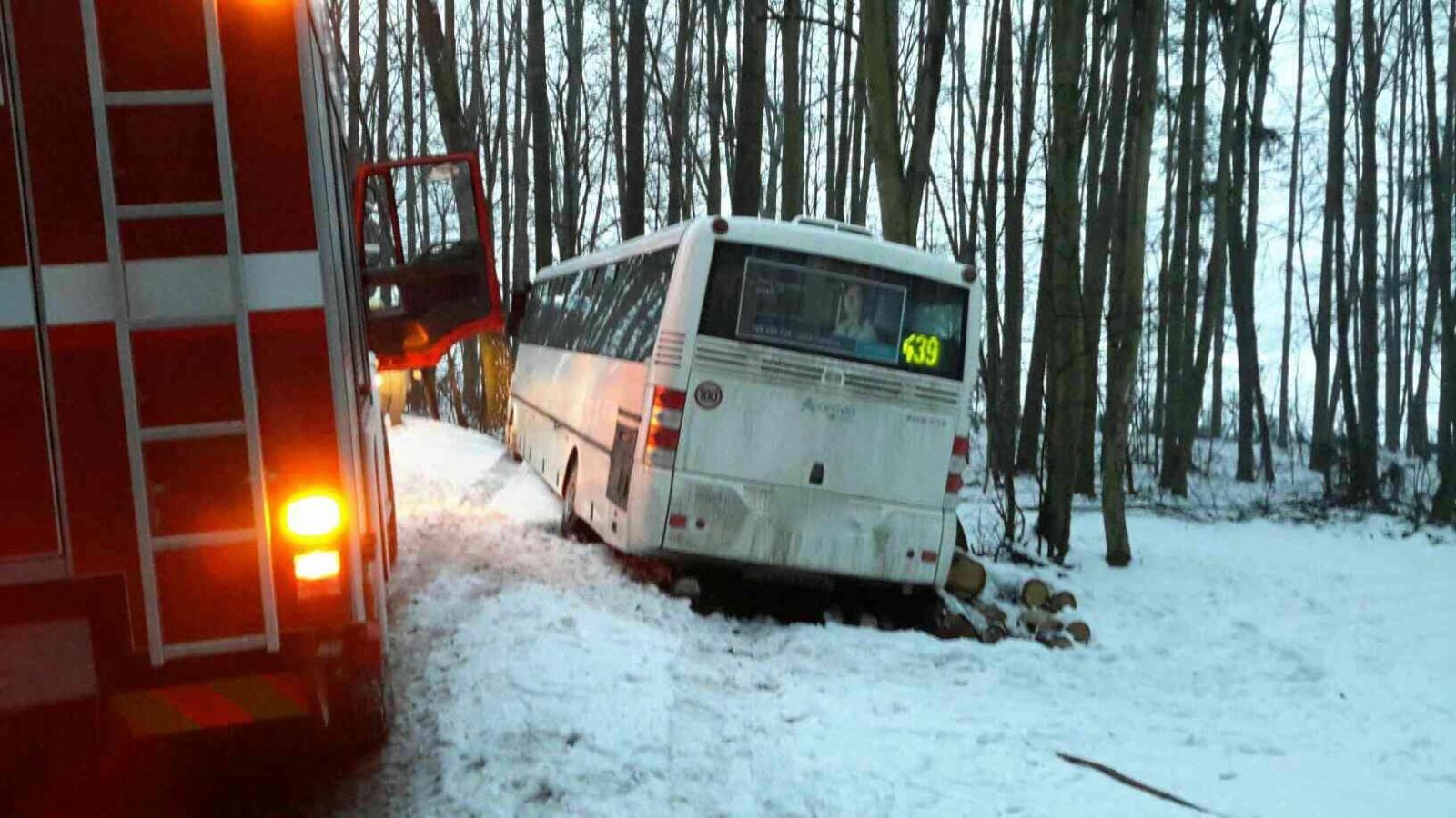 Centrum tísňového volání přijalo v odpoledních hodinách středy 6.3.2018 informaci o nehodě dodávkového vozidla a autobusu ve kterém zůstaly uvězněné dvě nezraněné osoby. Obě vozidla se při dopravní nehodě dostaly mimo komunikaci. Autobus se celým pravým bokem opřel o skládku kládového dřeva. Oba možné výstupy zůstaly zataraseny. Na místo jako první dorazila hlídka Policie ČR a podařilo se jí po chvíli klády uvolnit, návazně se osoby dostaly z autobusu do bezpečí. K události dorazila také specializovaná společnost na vyproštění autobusu. Hasiči po provedení nutných bezpečnostních opatření a kontrole možného úniku provozních kapalin asistovali při vyprošťování obou vozidel a překládce materiálu do náhradního vozidla.