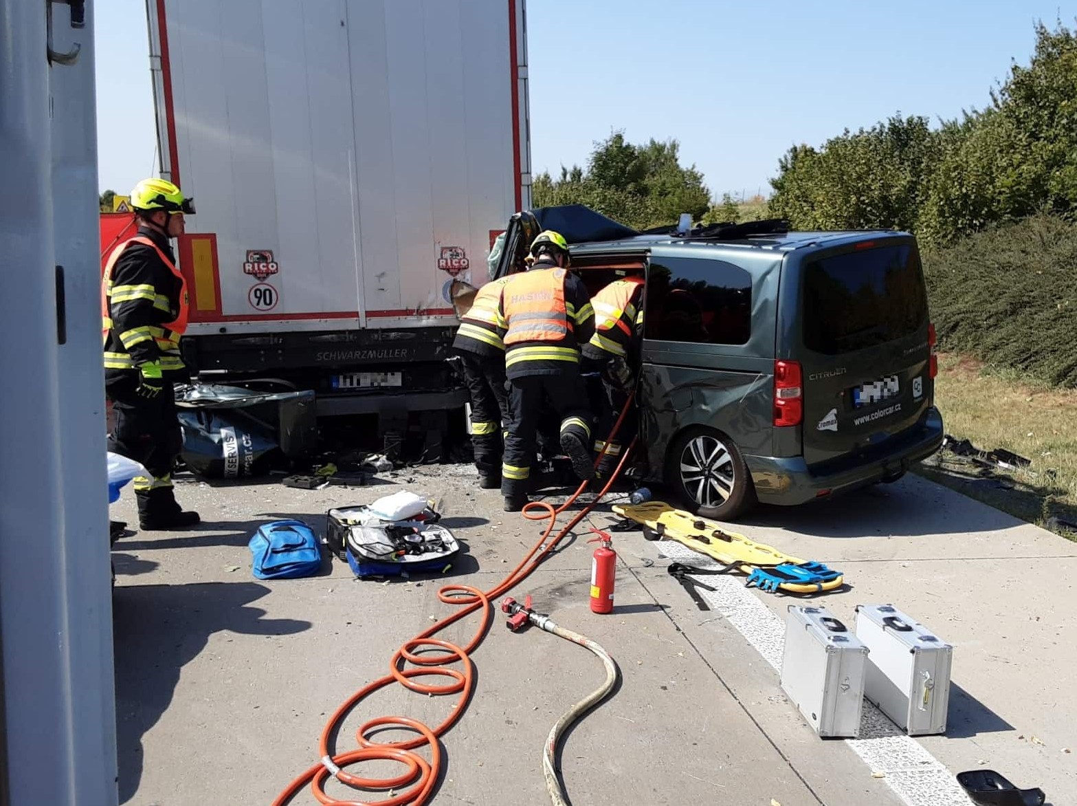 Ve středu zasahovali hasiči u vážné dopravní nehody na 299,5 km dálnice D1 ve směru na Olomouc. Osobní automobil se srazil s kamionem a řidič, muž středního věku, zůstal uvězněný pod návěsem kamionu. Utrpěl středně těžká zranění zejména dolních končetin.
