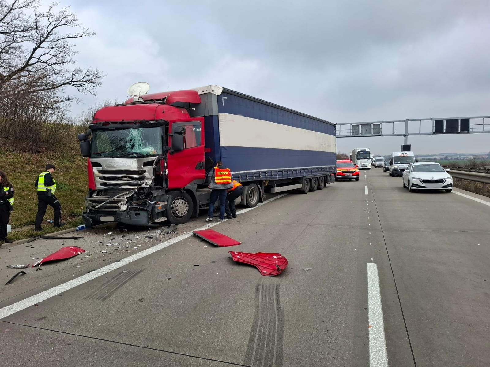 „Jeli jsme po pražském okruhu, provoz byl hustý, ale plynulý. A pak najednou kolona. V dálce jsme zahlédli blikající světla a už z dálky bylo jasné, že se něco stalo,“ vzpomíná npor. Večeřa. „Když jsme dojeli blíž, uviděli jsme dva havarované kamiony. Zastavili jsme okamžitě. Instinkt, zkušenost, povinnost — to všechno v nás zafungovalo automaticky.“