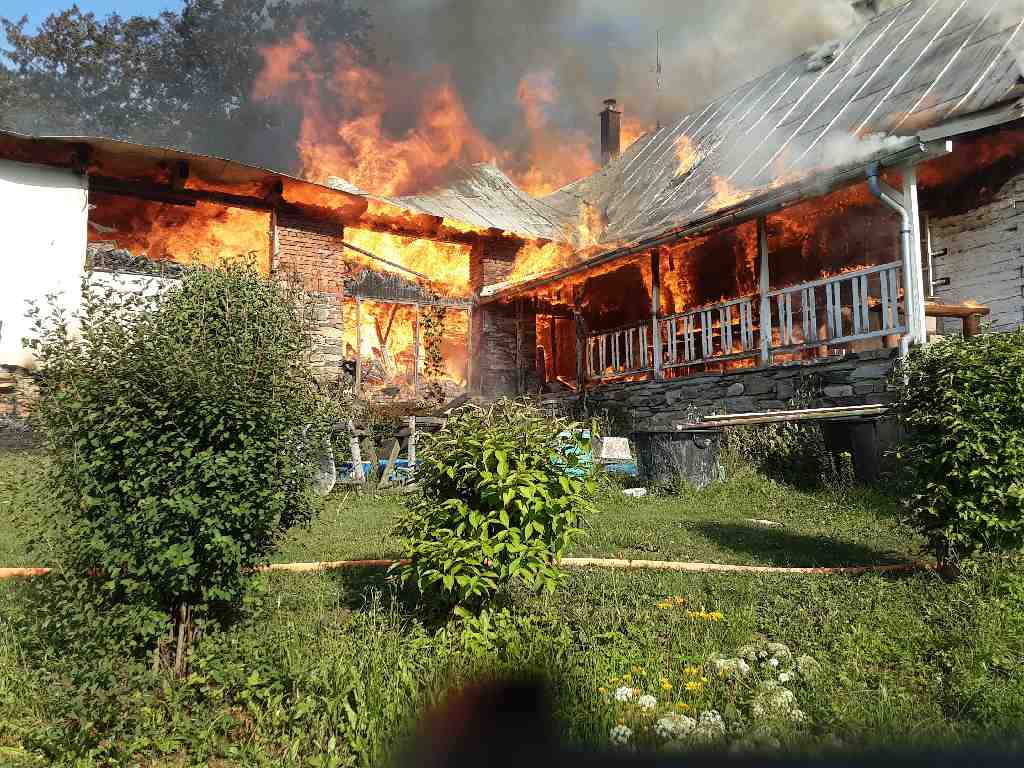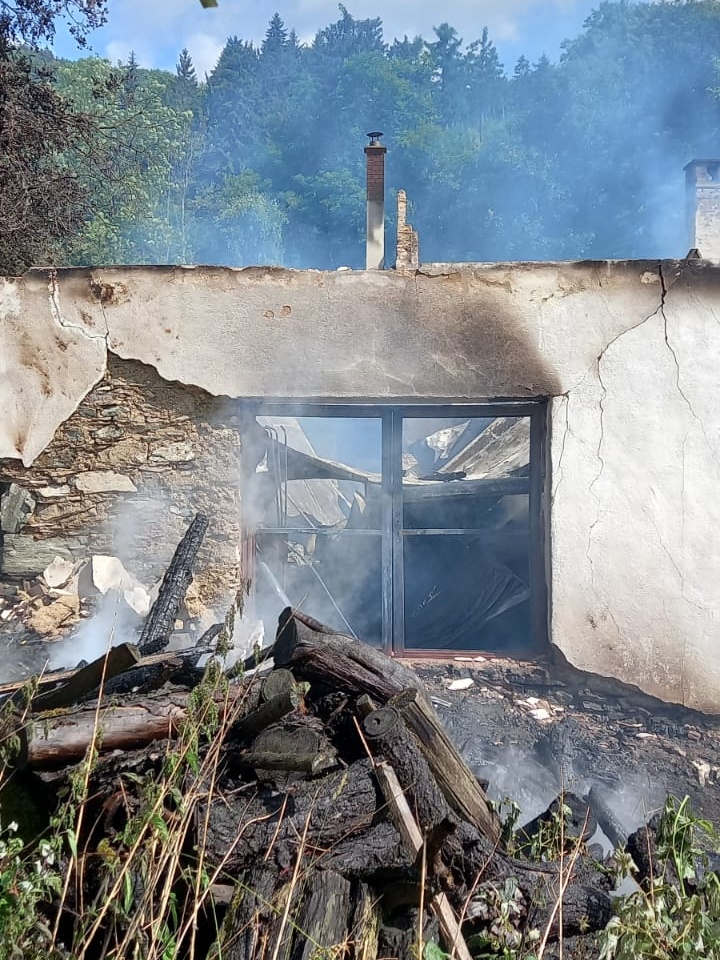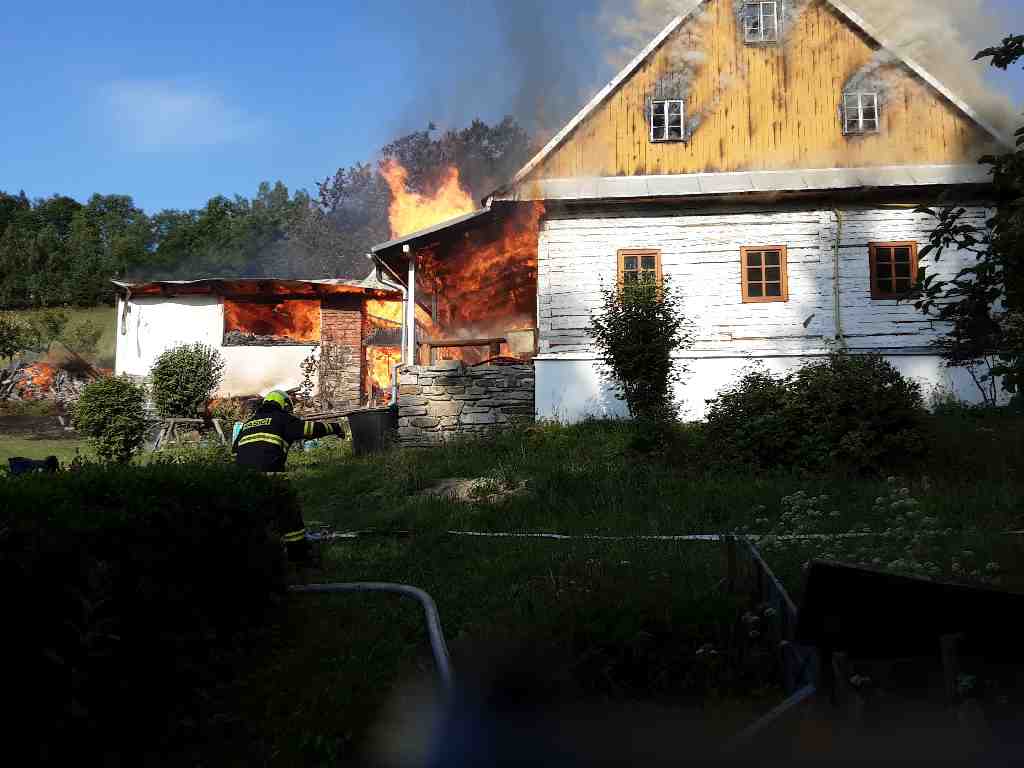 Požár rodinného domu a hospodářských budov hasilo v pondělí 3. července ráno devět jednotek profesionálních a dobrovolných hasičů ve Štědrákově Lhotě, místní části Rudy nad Moravou na Šumpersku. Jednalo se o objekt na samotě na hranici lesa se špatnou přístupovou cestou.