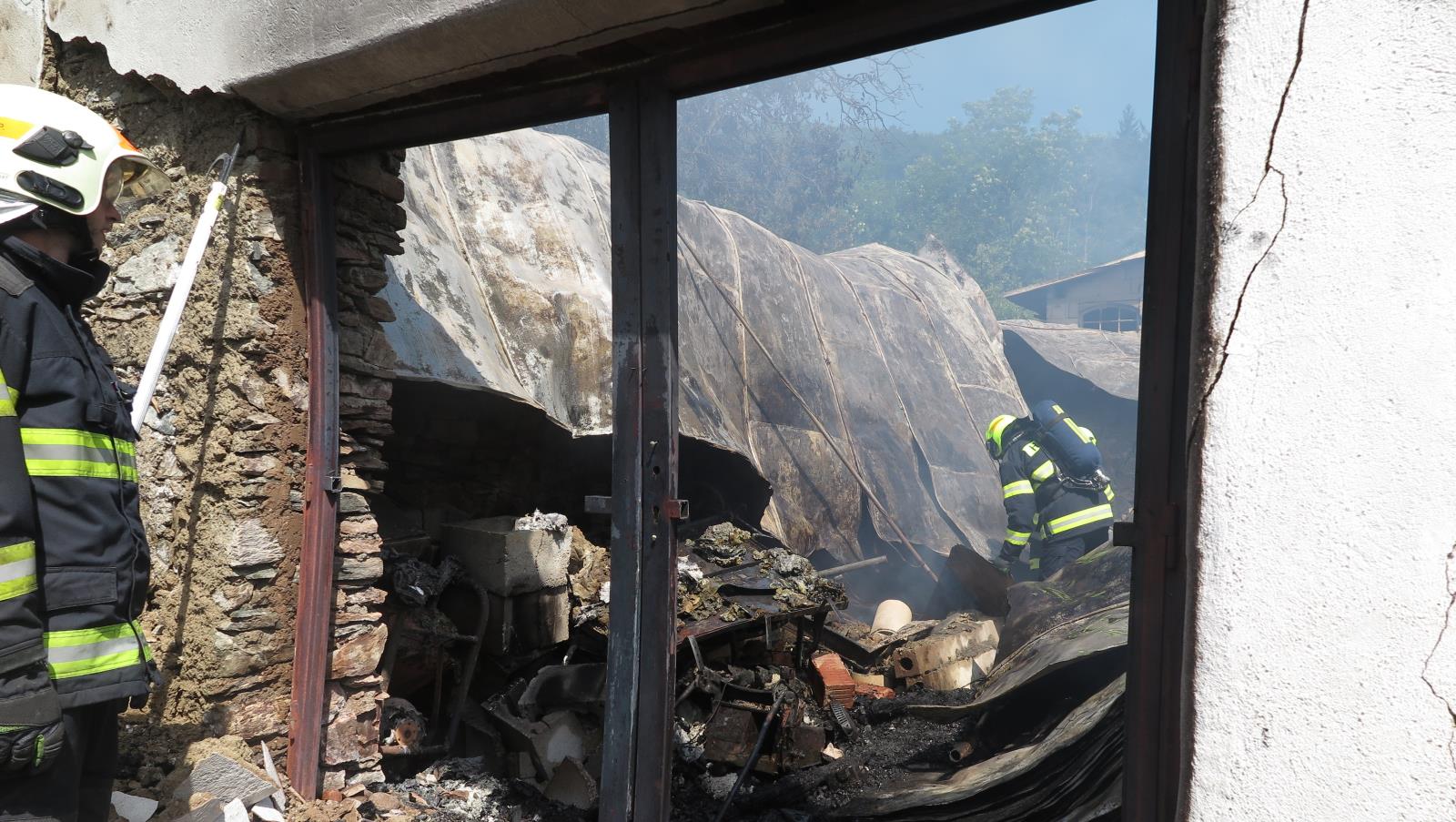 Při příjezdu našich jednotek hořel objekt v celém rozsahu. Uvnitř se nacházely tlakové láhve a agregát, vlivem požáru došlo k jejich explozi. V obci byla zřízena dvě čerpací stanoviště, vodu jsme dopravovali kyvadlově a také jsme využili dálkové vedení vody. S pomocí těžké techniky byla stržena část střechy a postupně rozebrány konstrukce, abychom mohli dohasit všechna skrytá ohniska. Zásah probíhal v dýchací technice.