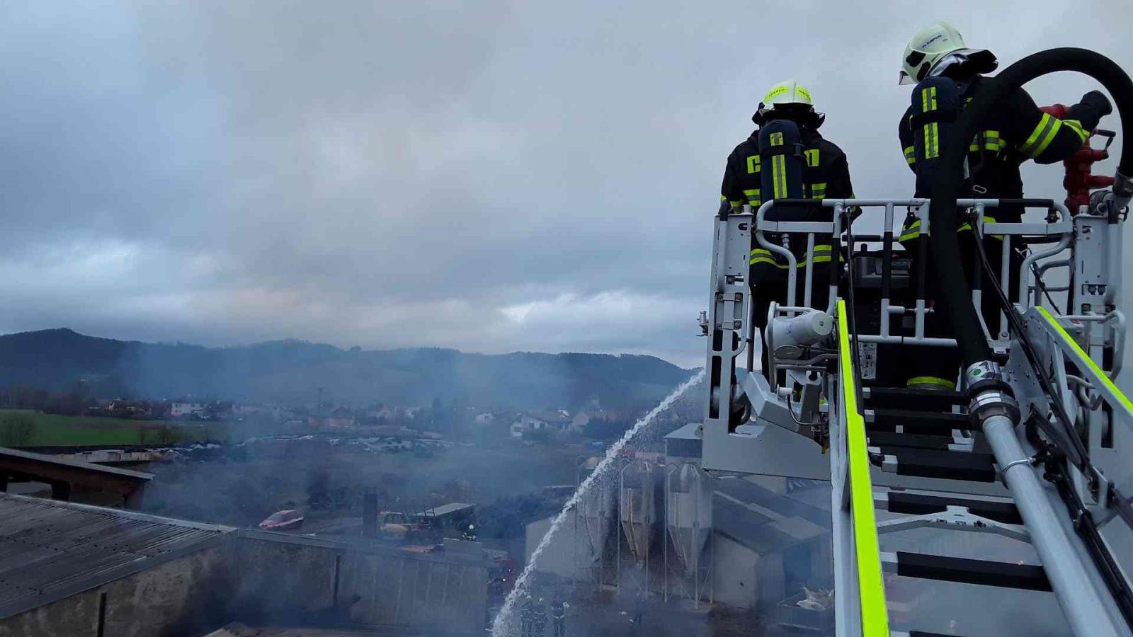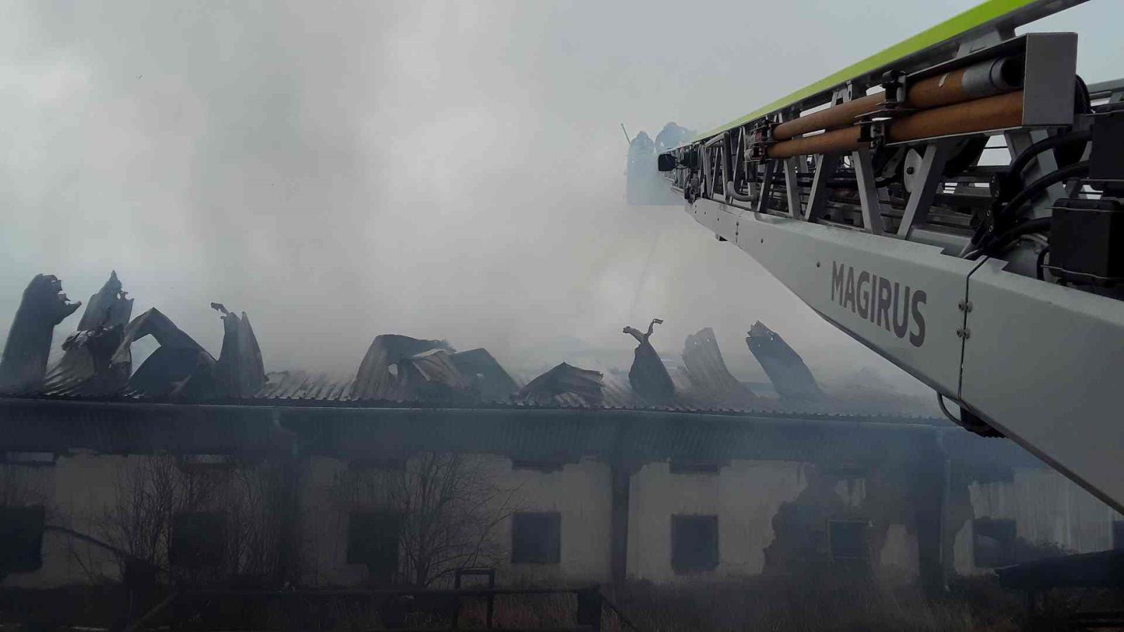 Během chvíle se k požáru dostavila profesionální jednotka odvolaná z kondičních jízd a také vyšetřovatel zjišťování příčin požáru, jejich informace přiblížili na další hodiny náročnou situaci na místě. Došlo k zahoření objektu se skladovanou slámou a senem na ploše zhruba 50x30 metrů. Plameny zcela pohltily střechu starší budovy a docházelo k její destrukci.