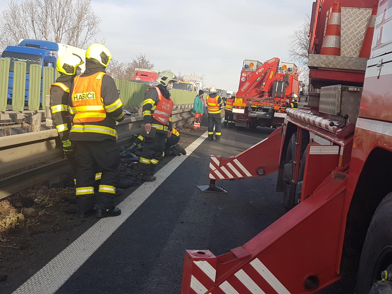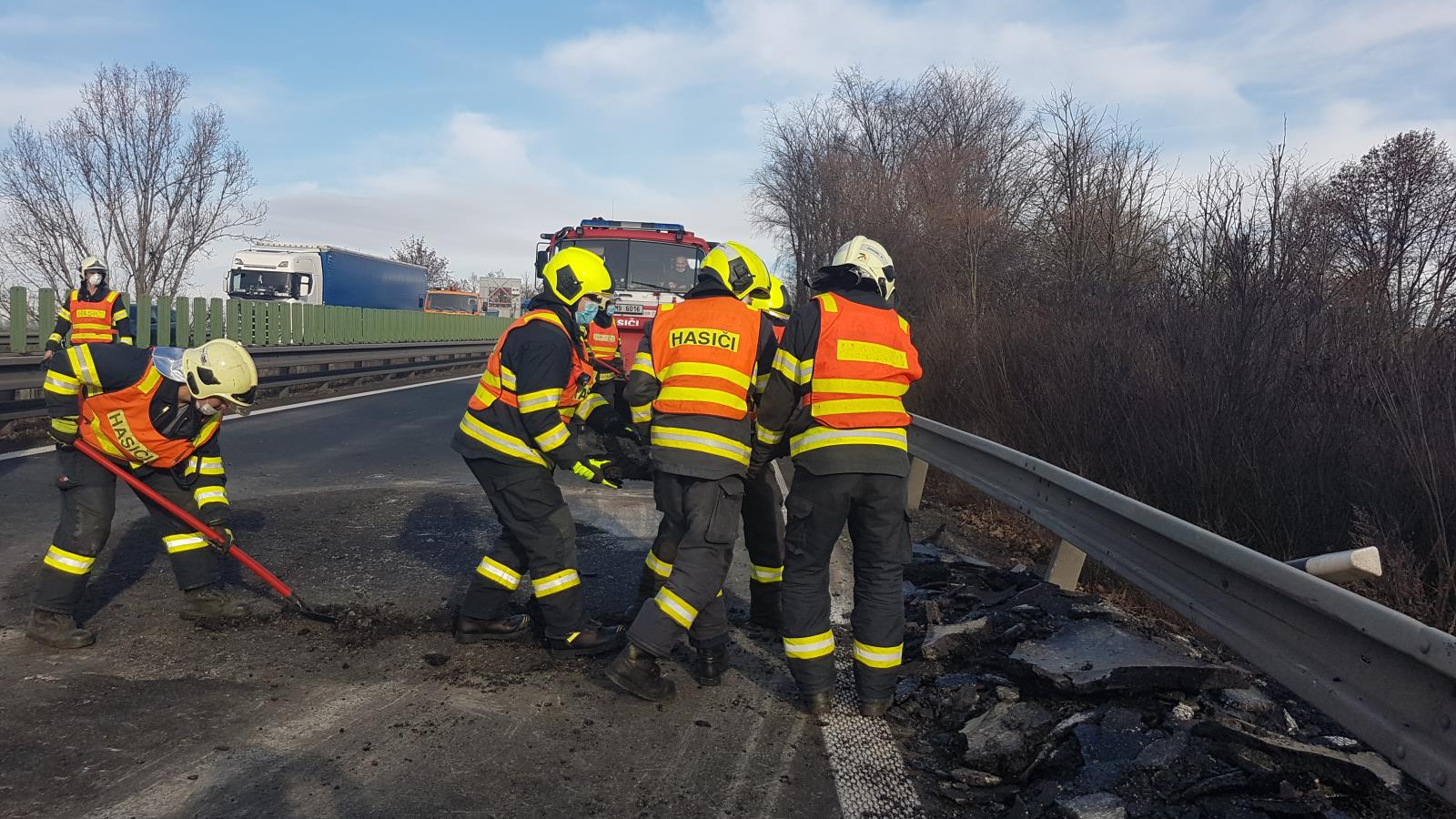 Po dobu našeho zásahu byla komunikace v jednom směru zcela neprůjezdná, ve druhém pak svedená pouze do jednoho jízdního pruhu. Komunikace je nyní průjezdná jedním jízdním pruhem a rychlost je snížena na 80 kilometrů v hodině.