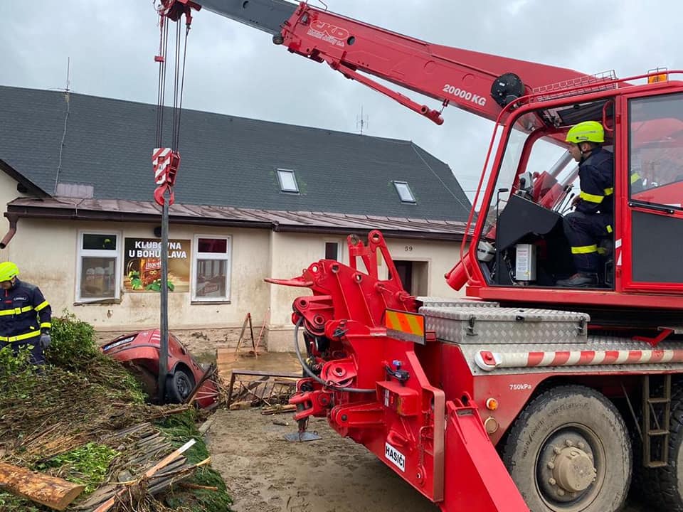 Záchranné a likvidační práce hasičů v obcích zasažených přívalovými dešti a rozvodněnými vodními toky...
