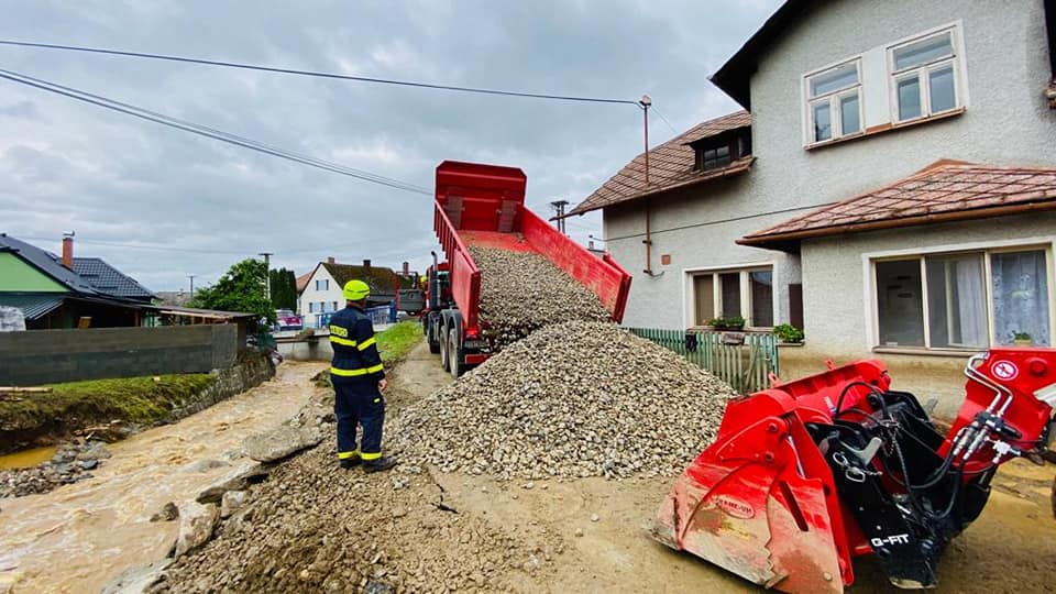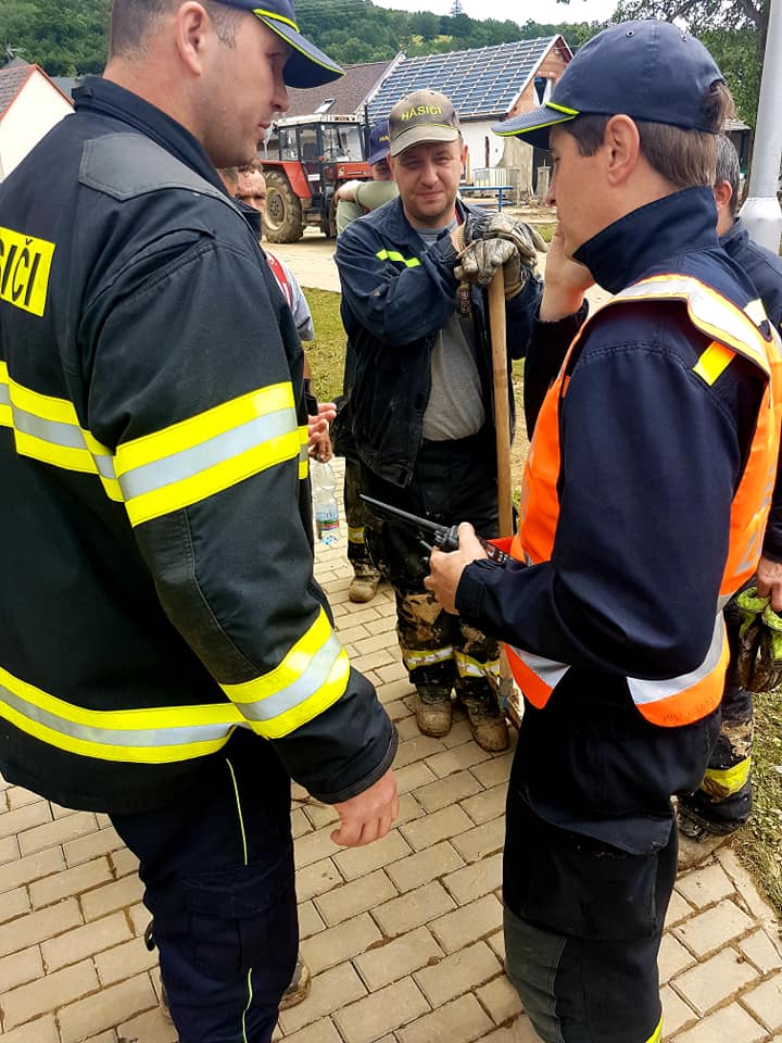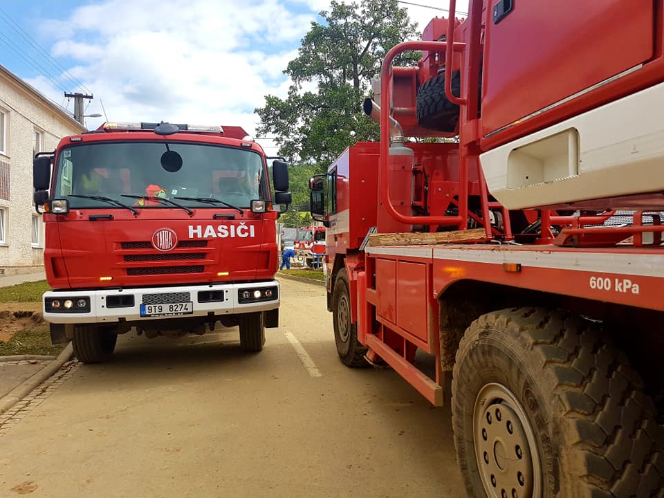• V Oskavě byl nasazen sací bagr a čerpací kontejner a odčerpávali jsme vodu ze zaplavených domů.