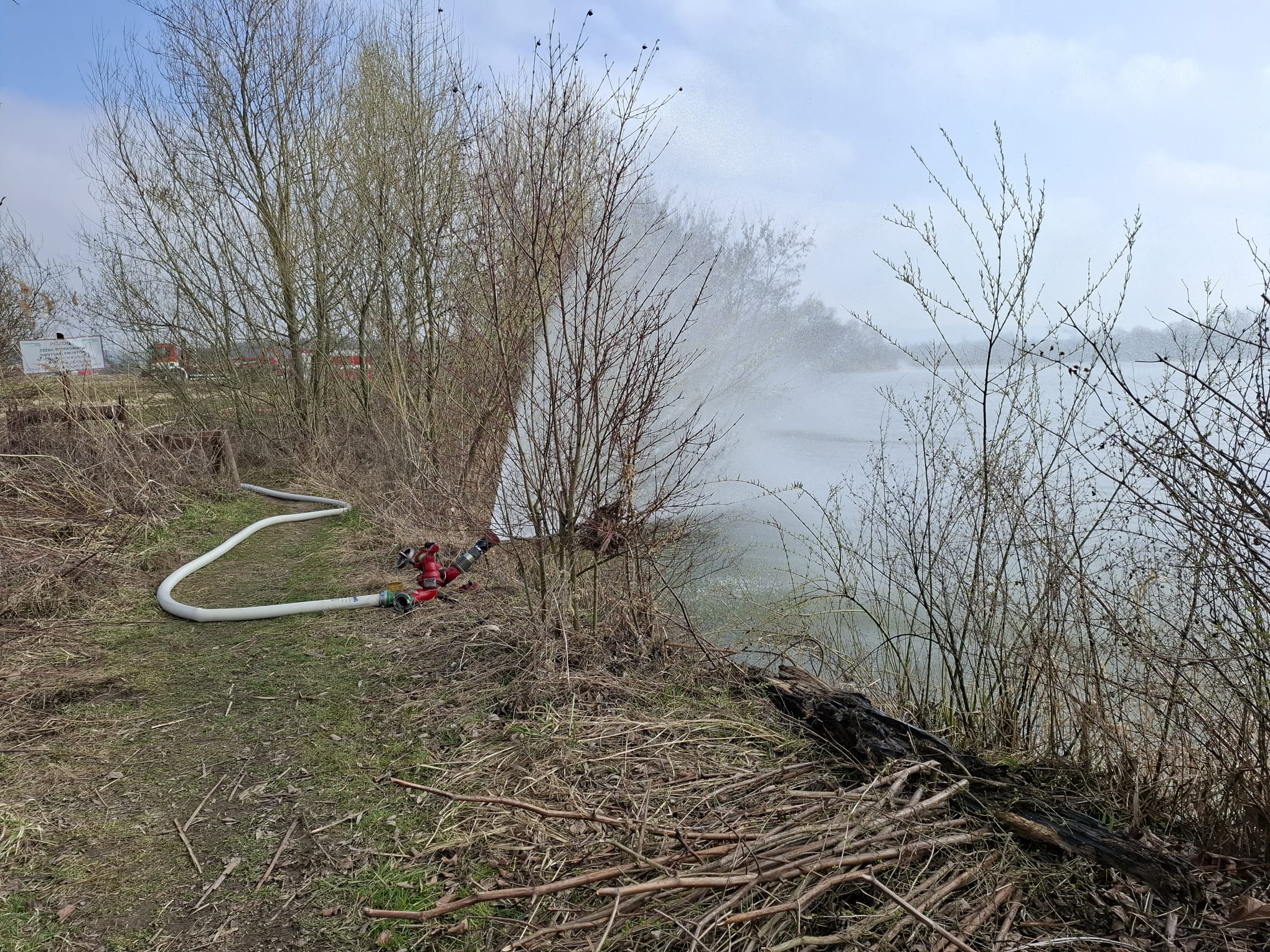 Hlavním úkolem hasičů je co nejrychleji odstranit benzen z vodní plochy. Pomáhají jim v tom dva velkokapacitní čerpací systémy Hydrosub 150 a 22 monitorů, které vytvářejí vodní mlhu. Ta umožňuje rychlejší odpařování nebezpečné látky.