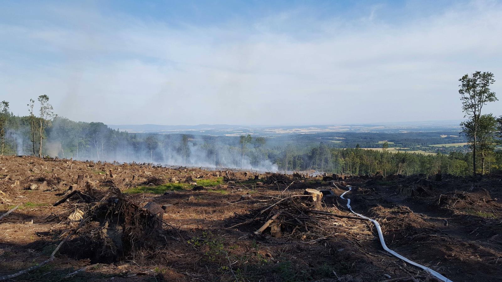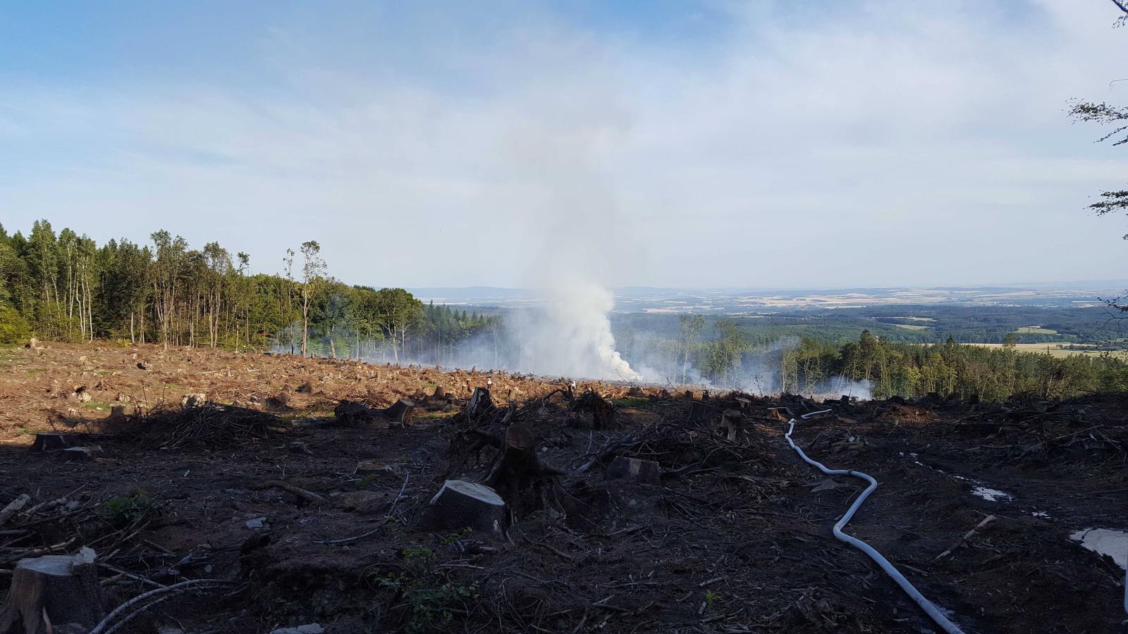 Na místo vyjeli profesionální hasiči z Olomouce a dobrovolní hasiči z Velké Bystřice, Velkého Újezdu a Hluboček a vojenská hasičská jednotka Libavá. Hustý černý dým valící se z lesa byl vidět z velké dálky, jedno oznámení události přišlo dokonce až z dálnice D46 od Držovic.