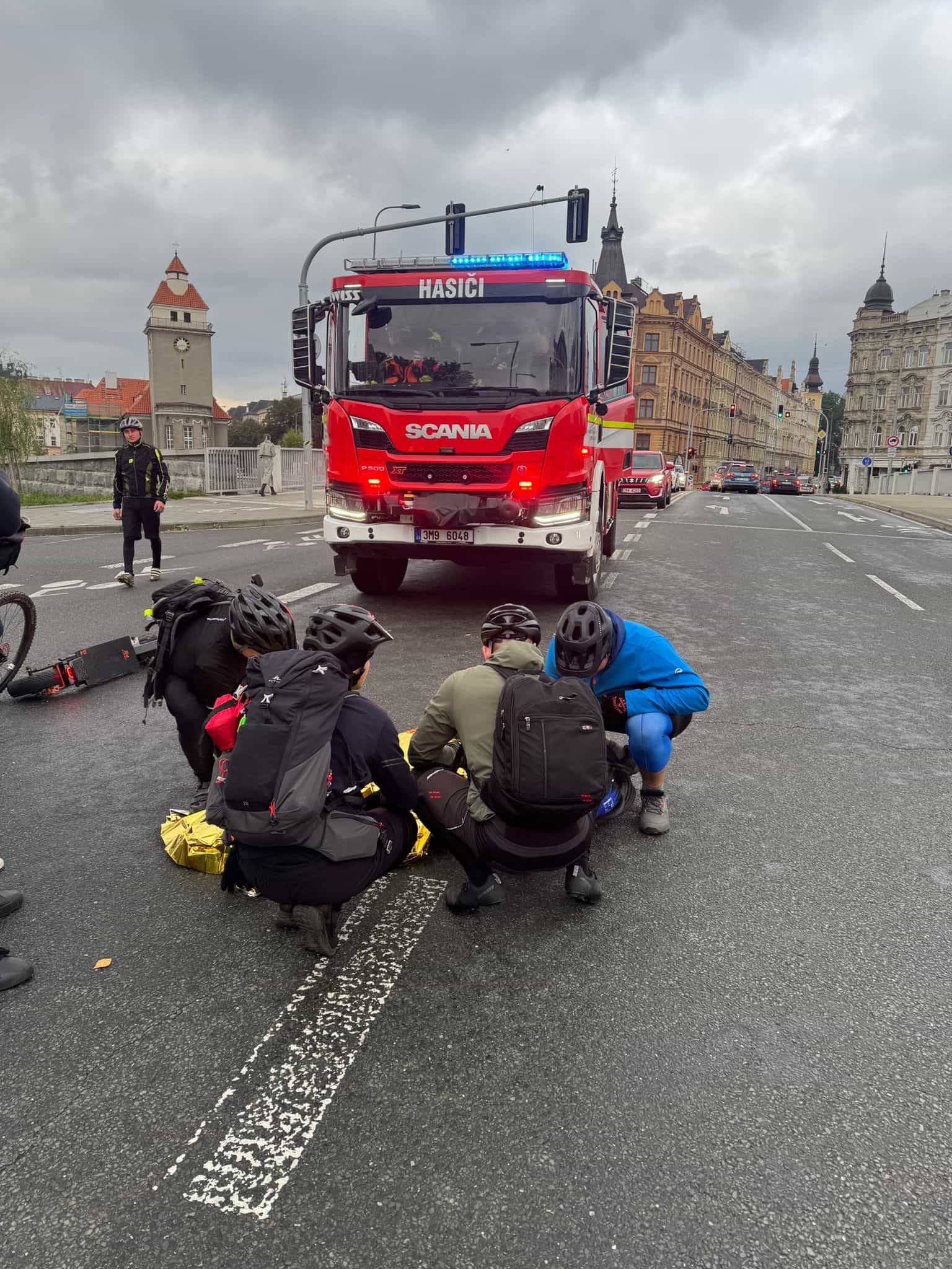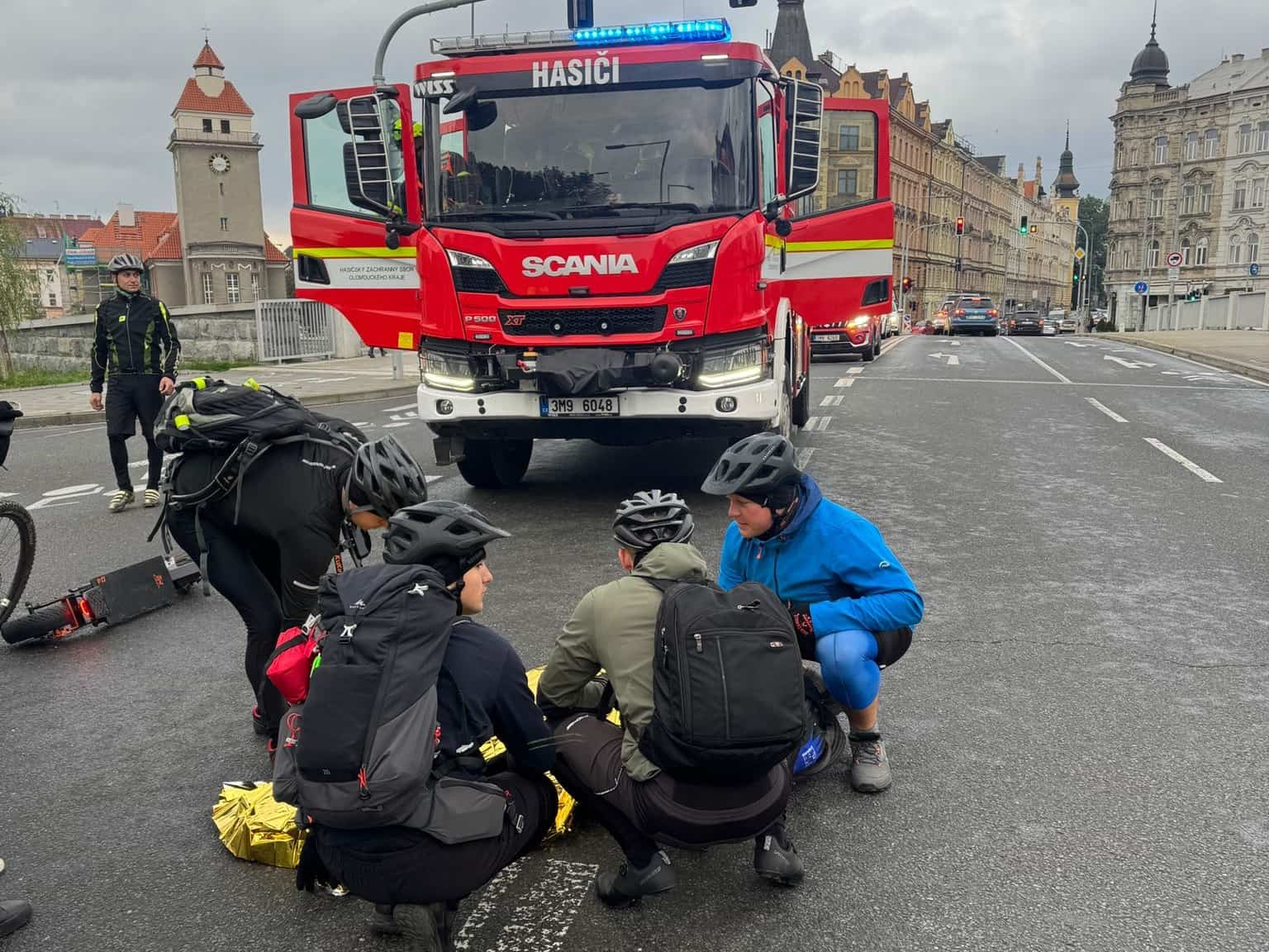 Směna C Hasičského záchranného sboru Olomouc vyrazila ve středu ve svém volnu na společnou cyklistickou vyjížďku. Během cesty přes most u Bristolu byli svědky nehody, při níž osobní automobil srazil muže na koloběžce. Hasiči neváhali, zastavili a okamžitě se ujali zraněného, který zůstal ležet na zemi.