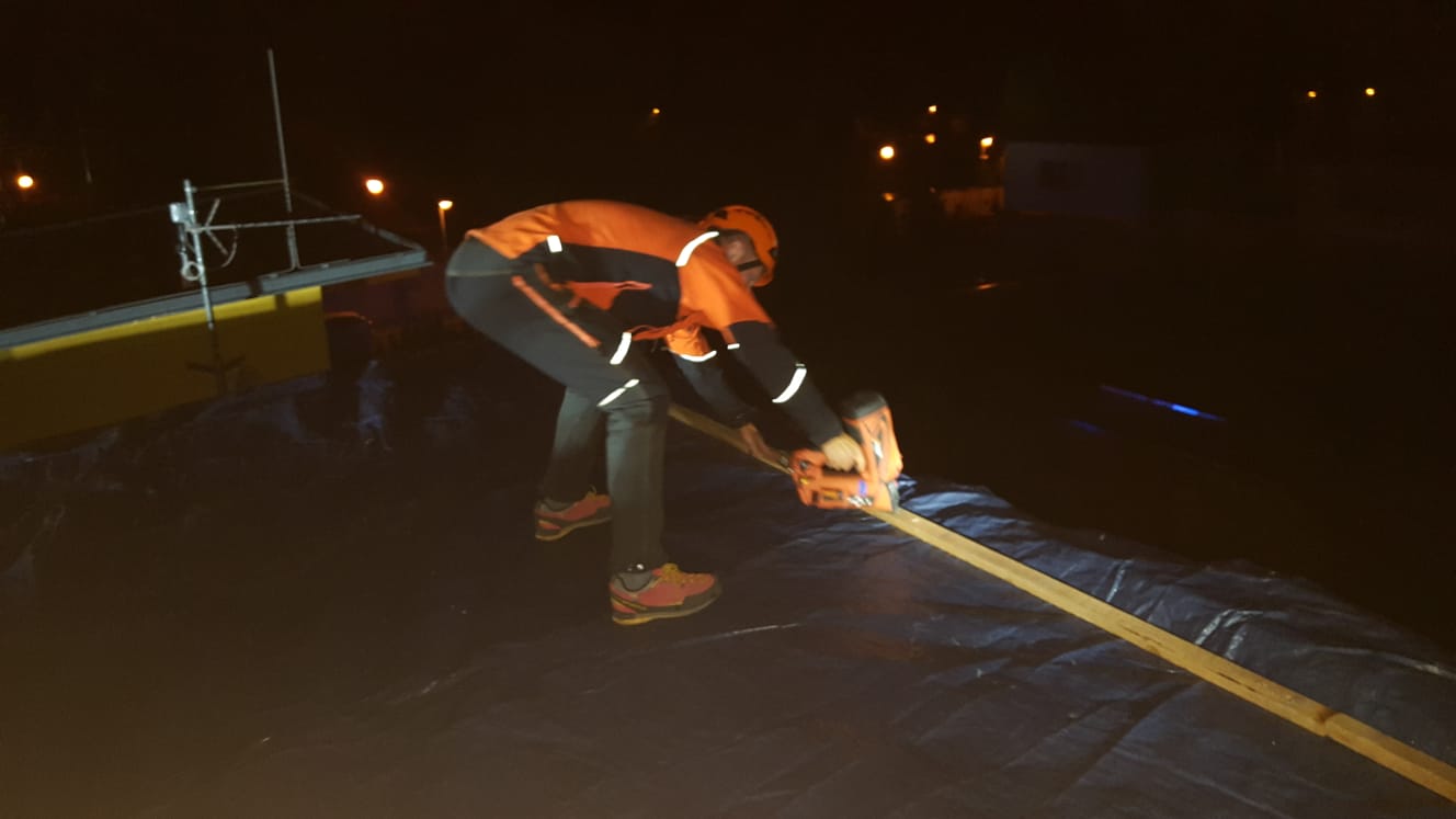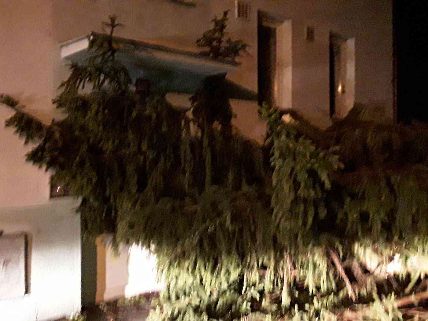 Nejnáročnější práci měly naše jednotky v okrajové části Uničova v ulici Pod Šibeníkem, kde ulétla padesát metrů celá střecha z jednopatrového domu. Na místě zasahovali profesionální hasiči z Uničova. Na žádost řídícího důstojníka byla na místo povolána také speciální technika s výdřevou z Olomouce a hasiči-lezci. Ti ve spolupráci s ostatními hasiči celou střechu zaplachtovali, zajistili latěmi a zabezpečili. Z tohoto rodinného domu také spadl komín na garáž sousedního objektu, takže hasiči museli odklidit suť z komínu z garáže a zaplachtovat provizorně i ji.