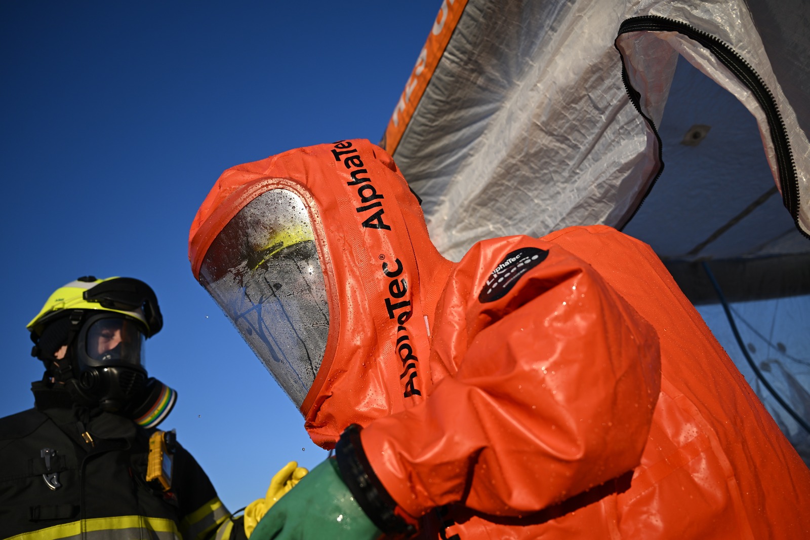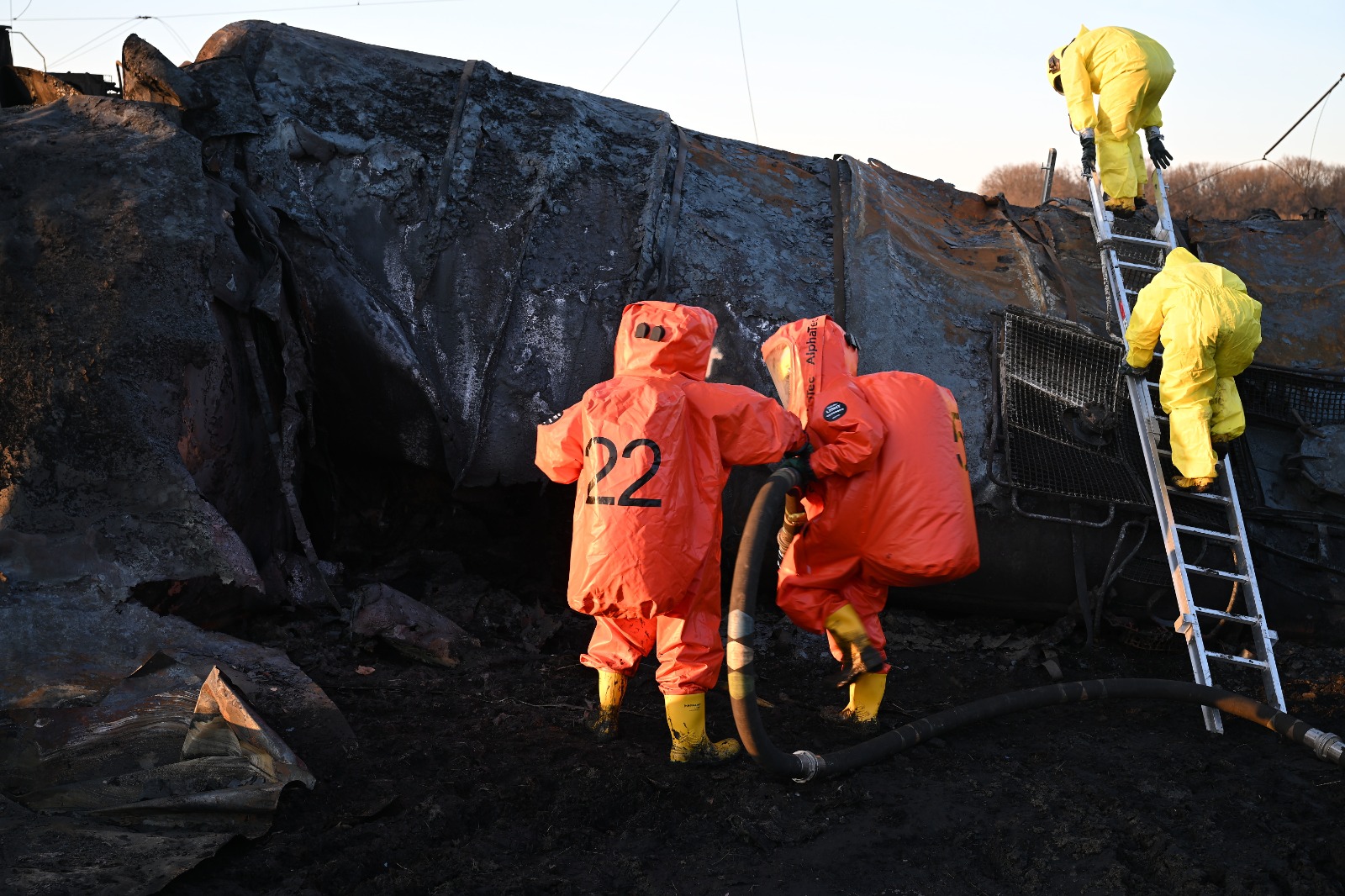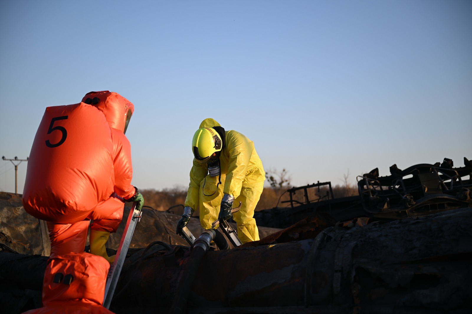 Na místě dochází k odčerpání posledních zbytků benzenu. Vzhledem k nebezpečným podmínkám probíhá veškerá práce za přísných bezpečnostních opatření. Po ukončení směny hasiči procházejí dekontaminací, která minimalizuje riziko přenosu nebezpečných látek.