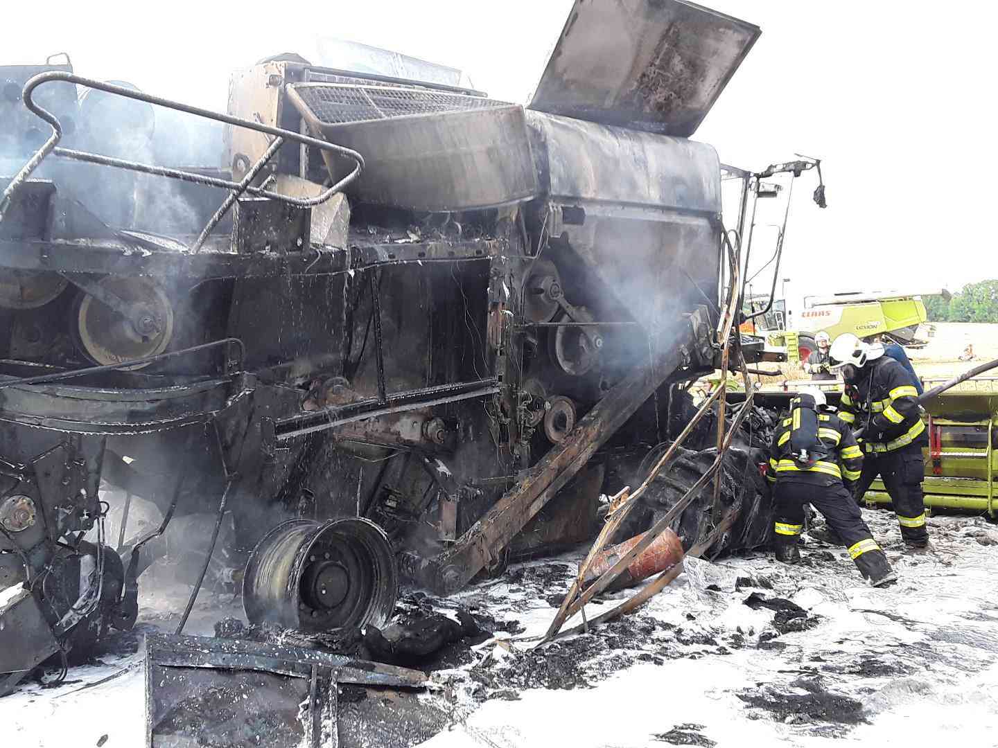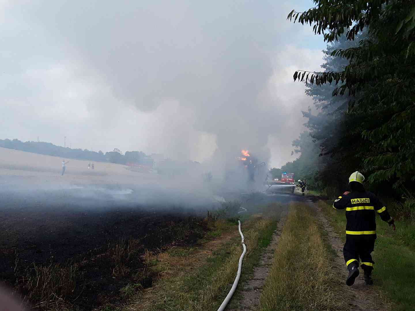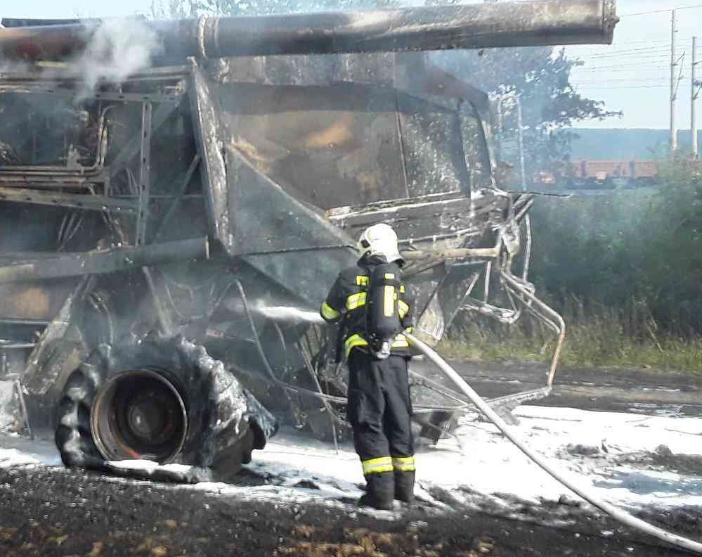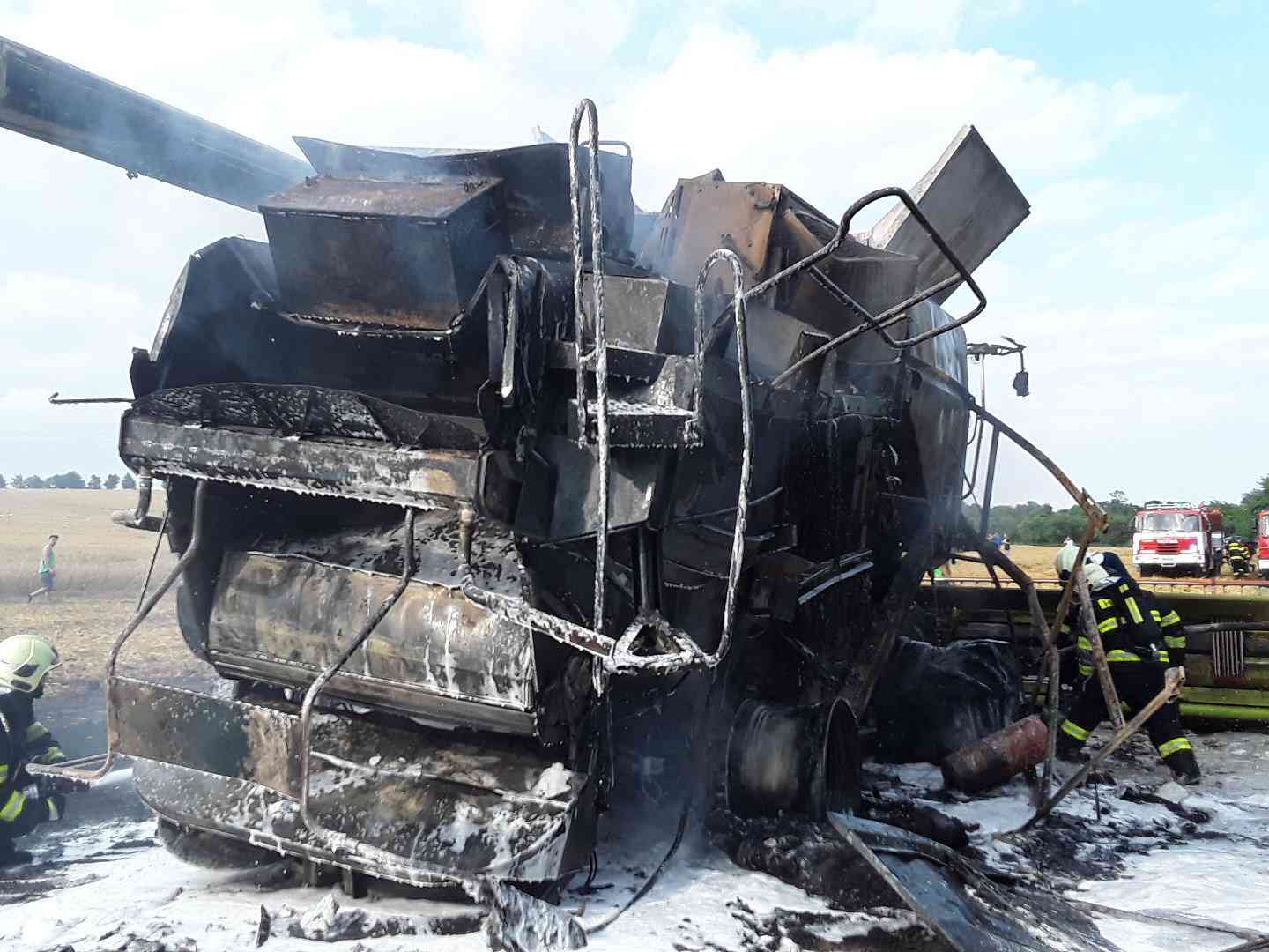 Vysokou škodu přes 4 miliony korun způsobil požár kombajnu u Jezernice nedaleko Lipníku nad Bečvou.