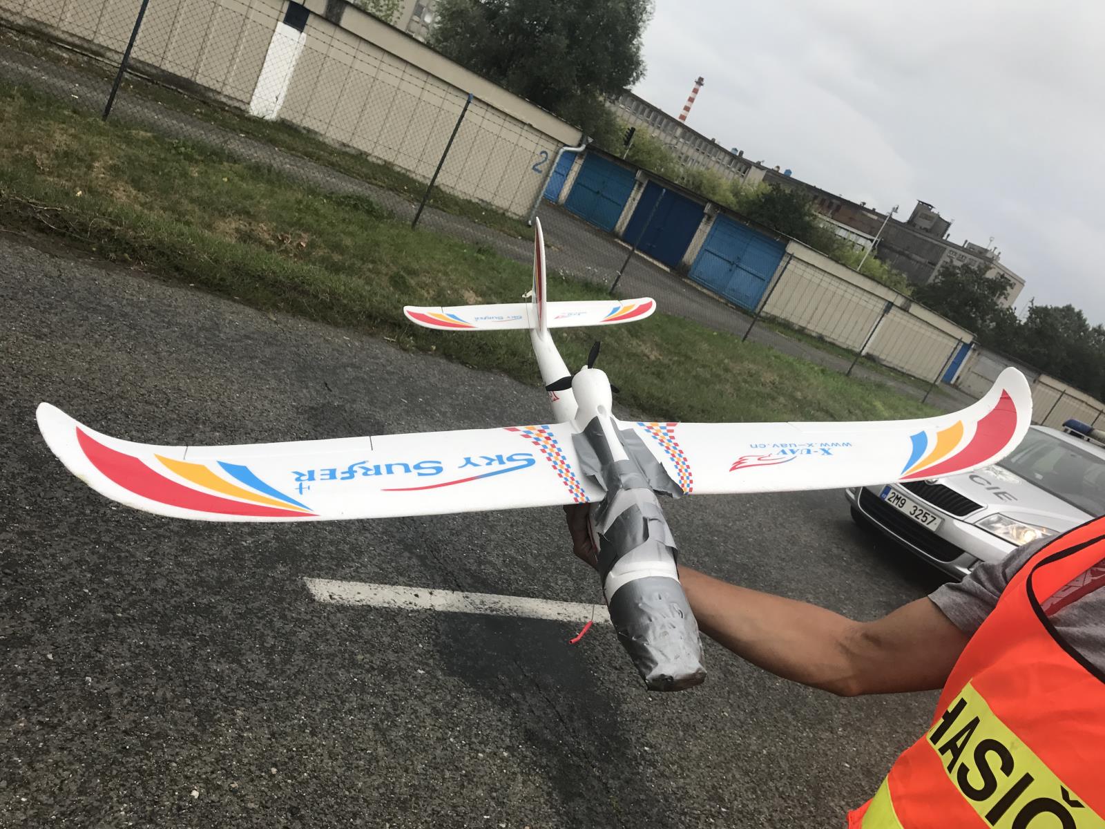Hasiči sundávali z koruny stromu model letadla