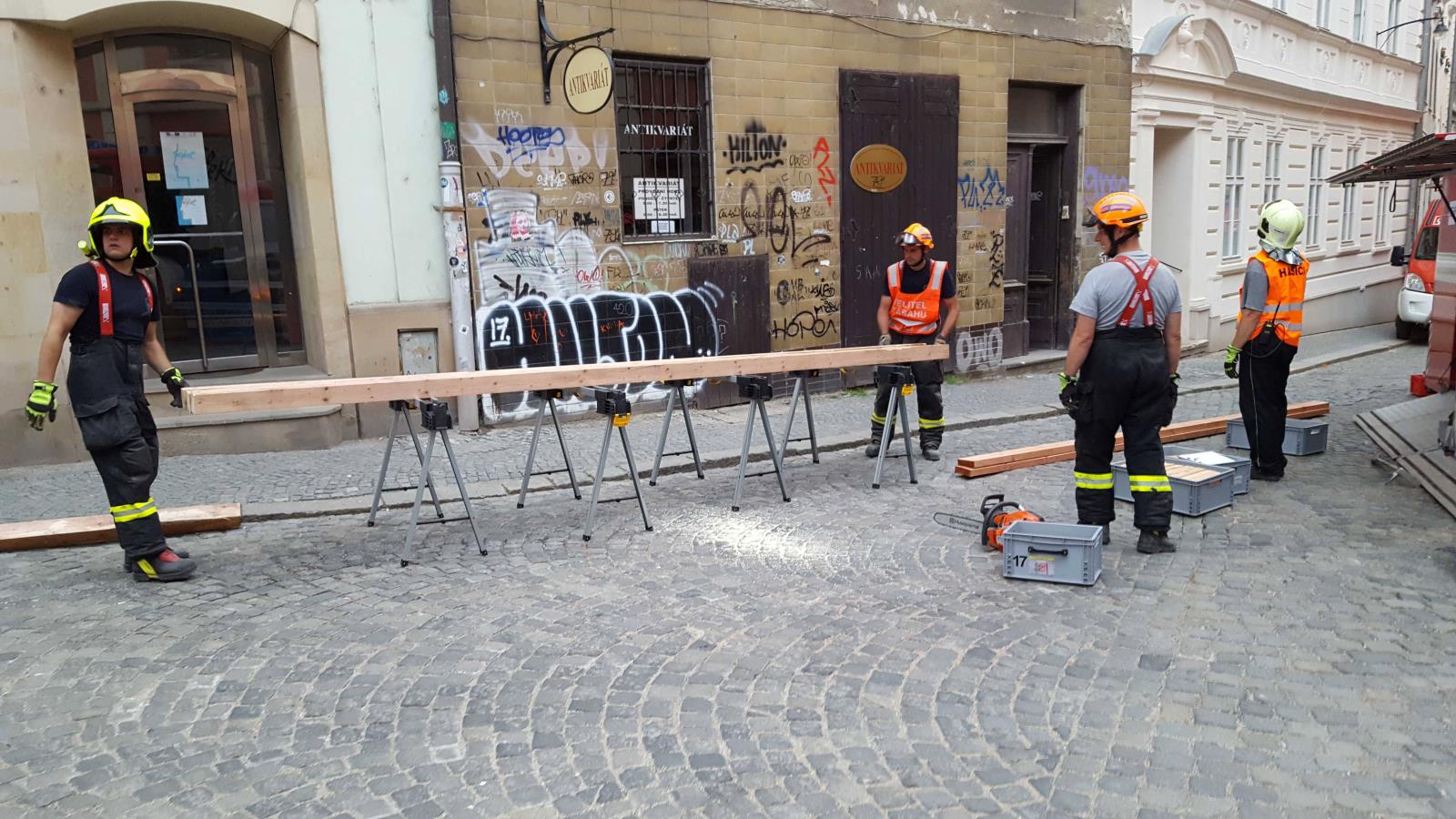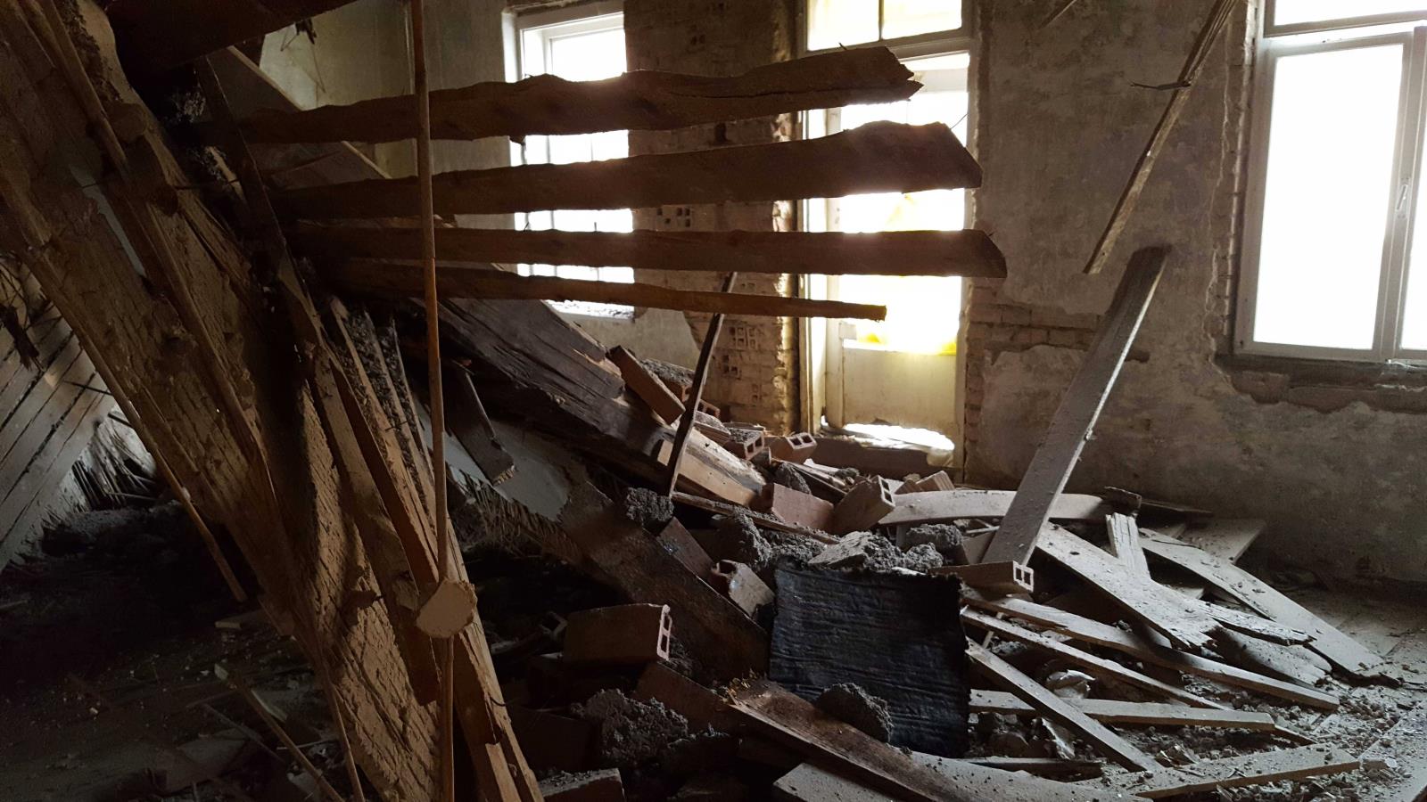 Na místo se dostavil řidicí důstojník a po dohodě s velitelem zásahu byl povolán také statik. Ten po kontrole objektu hasičům doporučil, aby střechu podepřeli a zpevnili nejen propadený strop v bytě těsně pod střechou, ale také strop v bytě o patro níž. Hasiči proto v dolním bytě postavili konstrukci, která strop zpevnila. Obyvatelé tohoto bytu museli vyhledat náhradní ubytování, protože celý dům je neobyvatelný. Hasiči svůj zásah na místě ukončili v 21:15 hodin