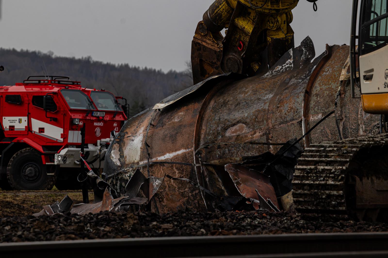 Aktualizace: Dnes 13. 3. 2025 Hasiči dokončili demontáž vagónů a jejich odvoz v Hustopečích nad Bečvou. Čelní a kolový nakladač posbíral všechny uvolněné trosky cisteren a nákladní vozidla je odvezla k likvidaci. Místo zásahu budeme i zítra chystat pro další postupy k ochraně životního prostředí a sanaci území.