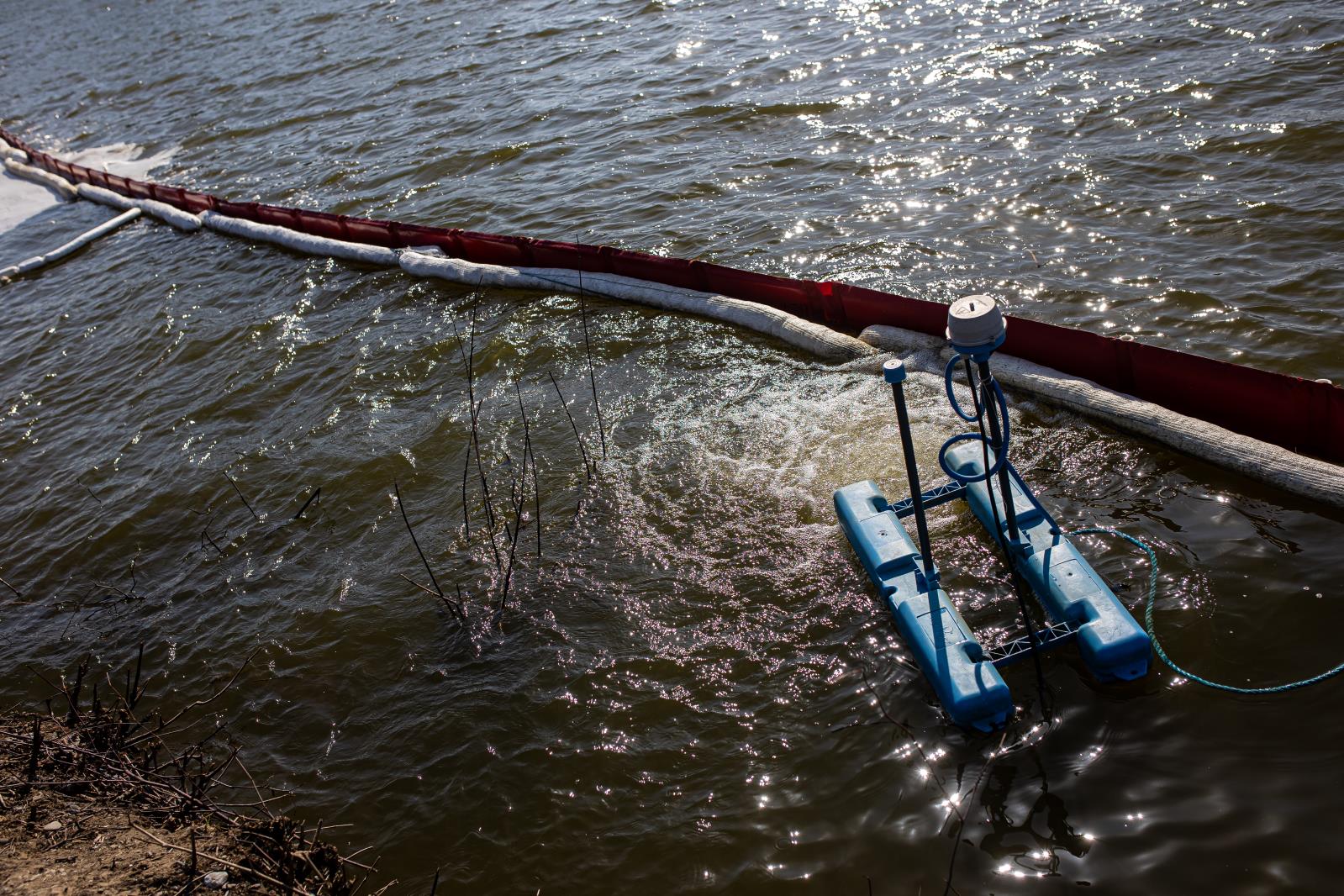 Pásová rypadla vytvořila 28 hlubinných sond určených pro čerpání kontaminované podzemní vody. Tyto sondy byly vystrojeny tak, aby specializovaná firma mohla provádět sanaci postiženého území. Na vodních plochách byly rozmístěny stovky metrů sorpčních hadů a norných stěn, které sloužily k zachycení nebezpečných látek uniklých do vodního ekosystému.