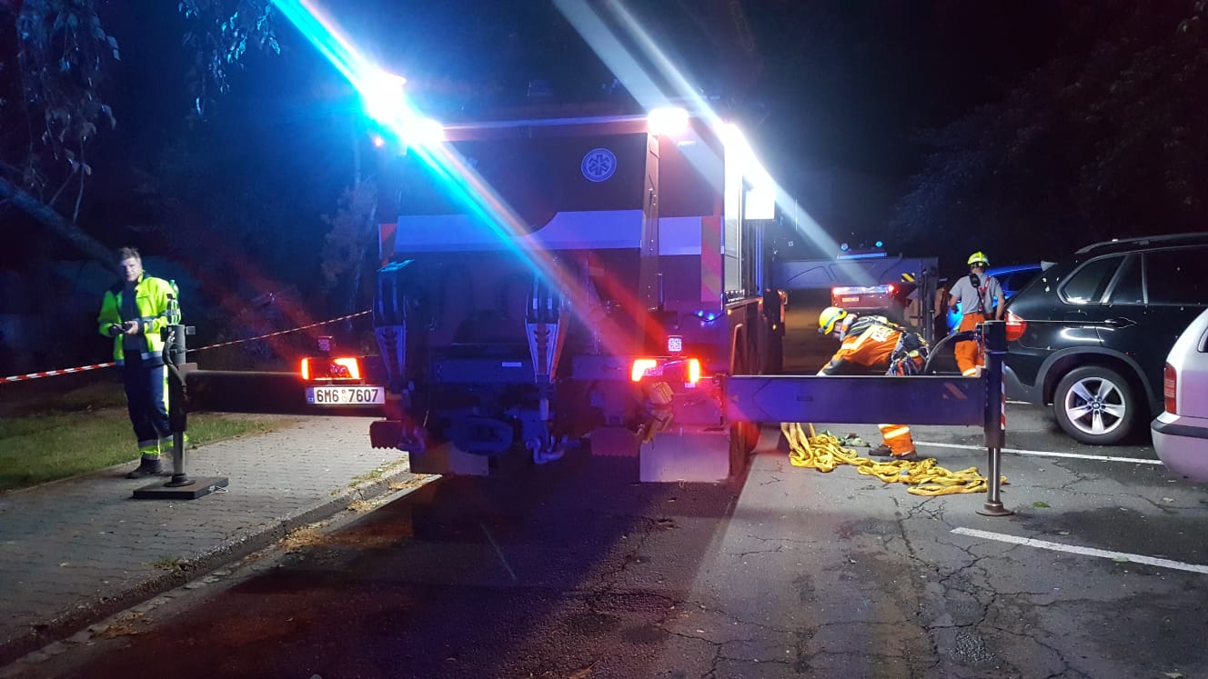 Zajištění místa se spadlými dráty elektrického vedení. |