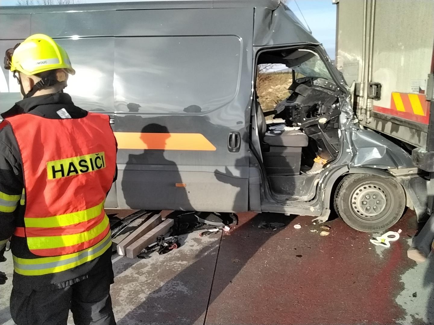 Hasiči vyprostili dvě zraněné osoby po srážce kamionu a dodávky