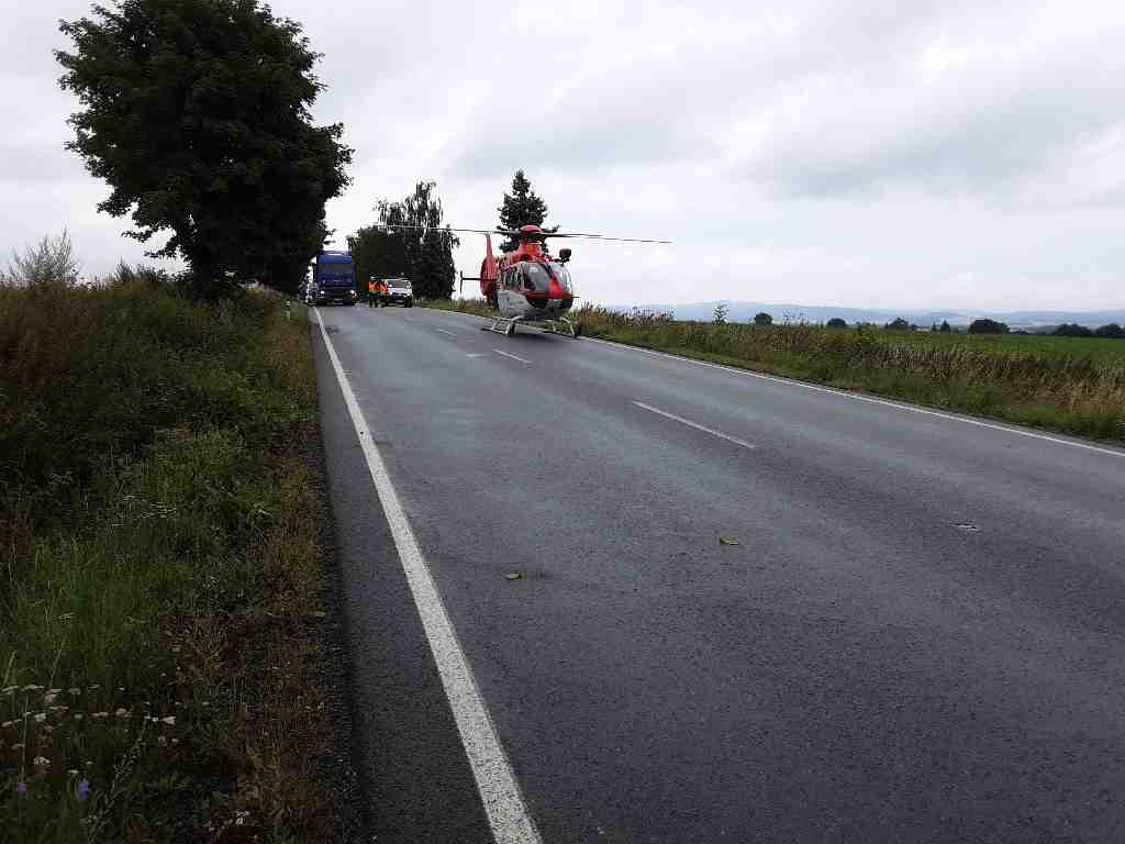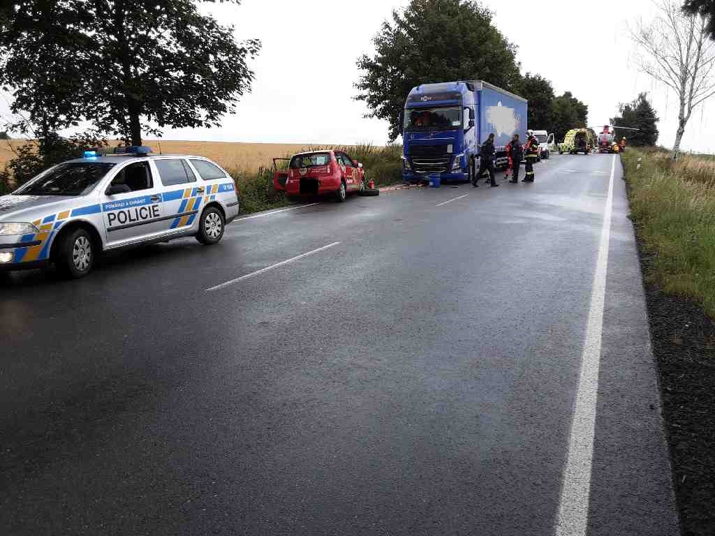 Po střetu nákladního a osobního vozidla zůstala v menším voze zaklíněna jedna zraněná osoba, kterou hasiči vyprostili na páteřní desce z automobilu ven. Využili hydraulický rozpínák, jímž odblokovali zdemolované dveře. Řidiče poté předali do péče posádce letecké záchranné služby a asistovali při jeho transportu do vrtulníku.