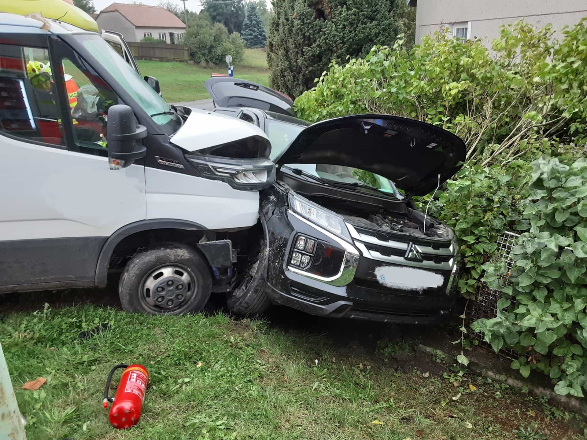 Hasiči vyprošťovali zaklíněné pasažéry po těžké nehodě dodávky a osobního auta