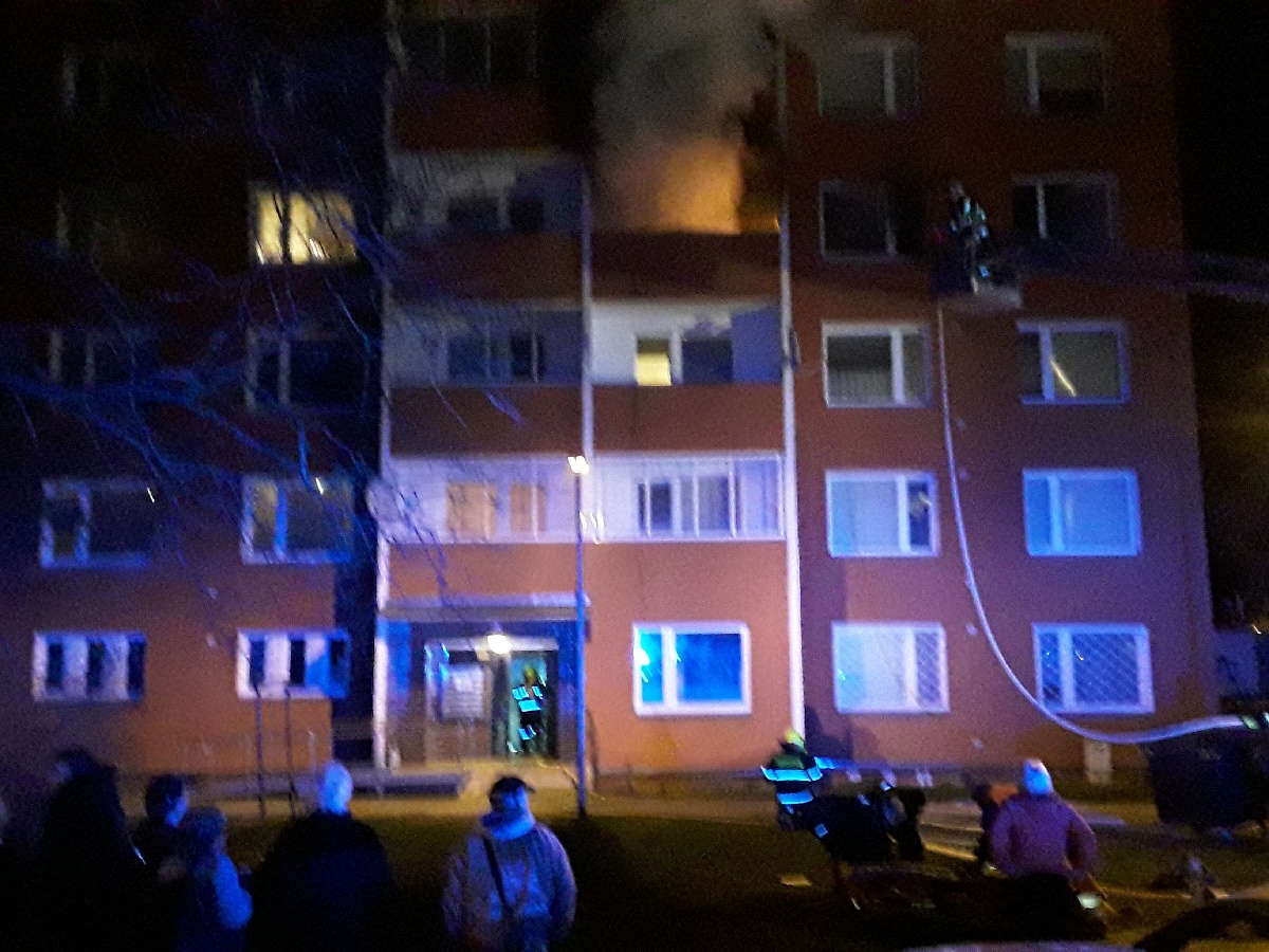 Dalších 40 lidí museli hasiči v noci evakuovat. Na místě zasahovalo pět jednotek, využili jsme i hasičský evakuační autobus.