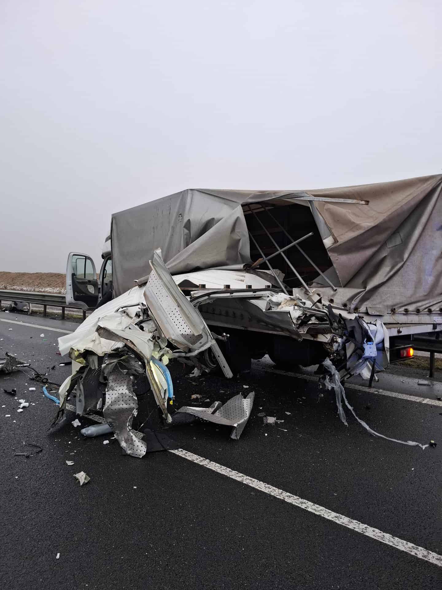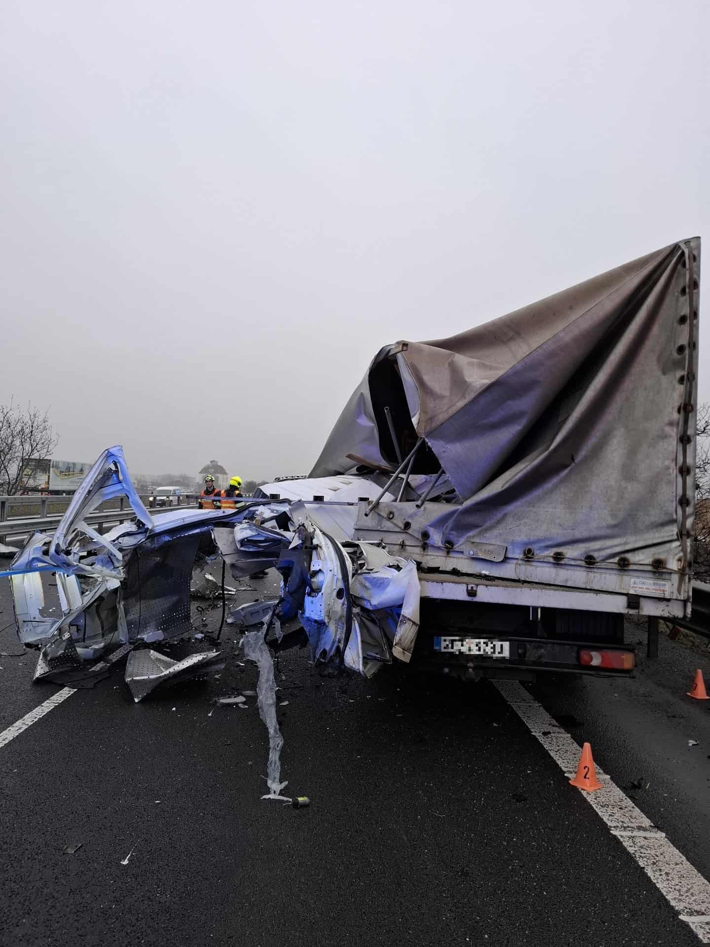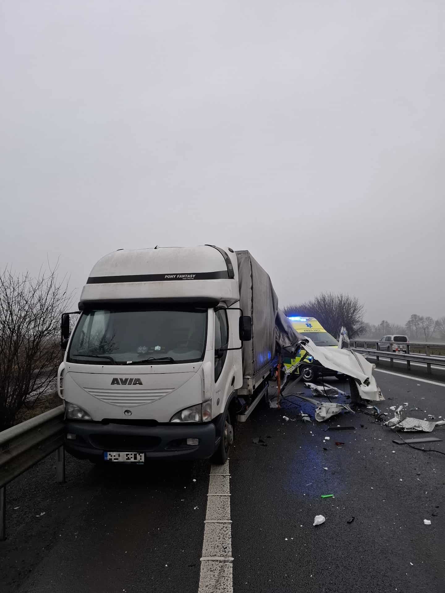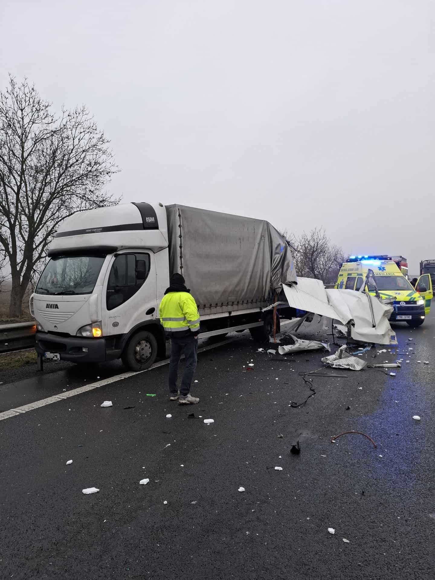 Kolize nákladních vozidel na dálnici
