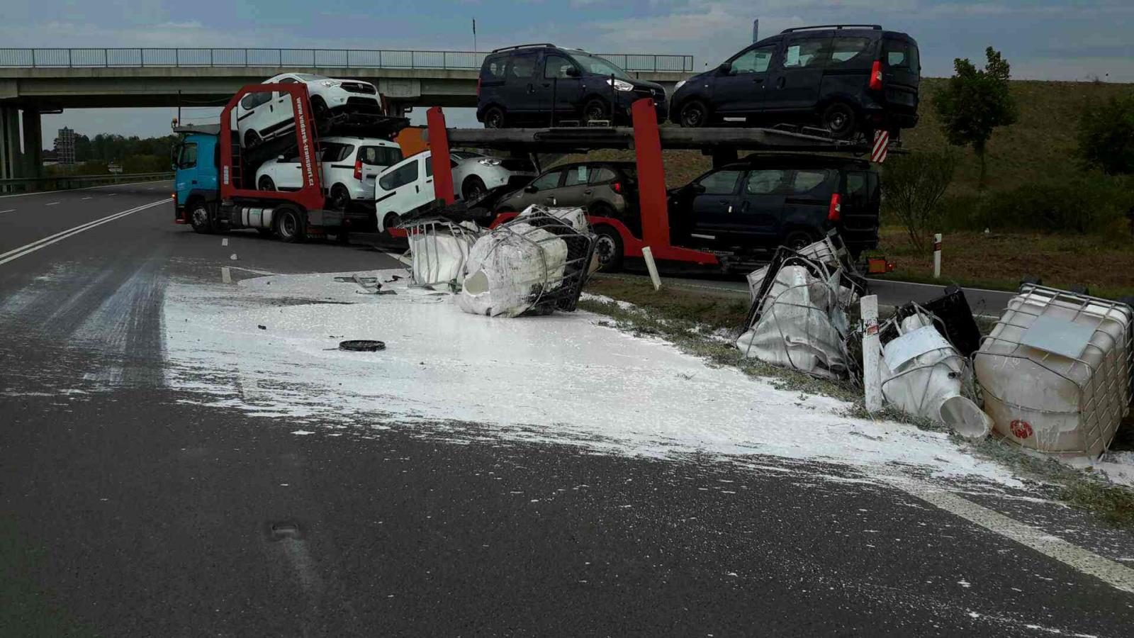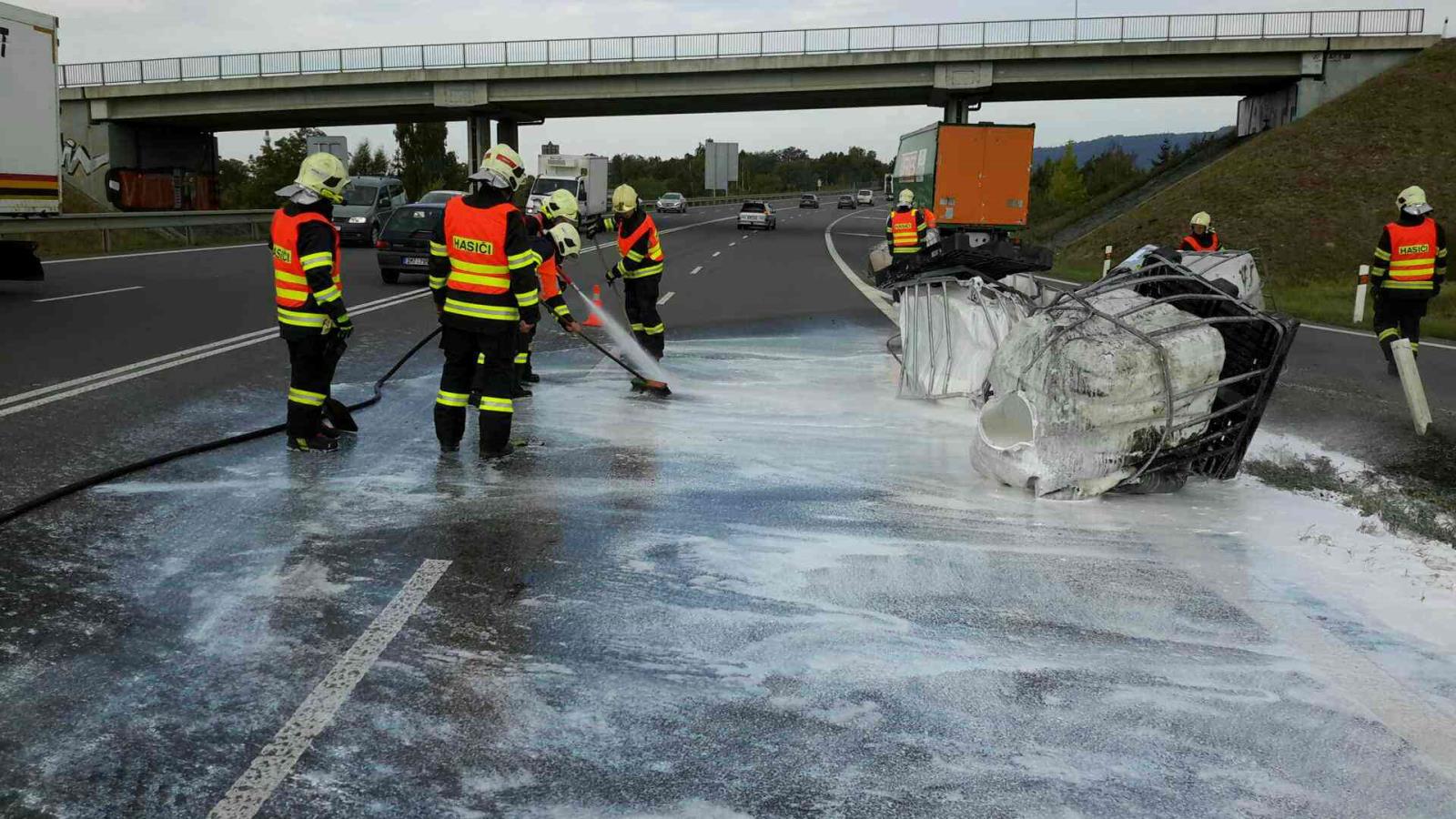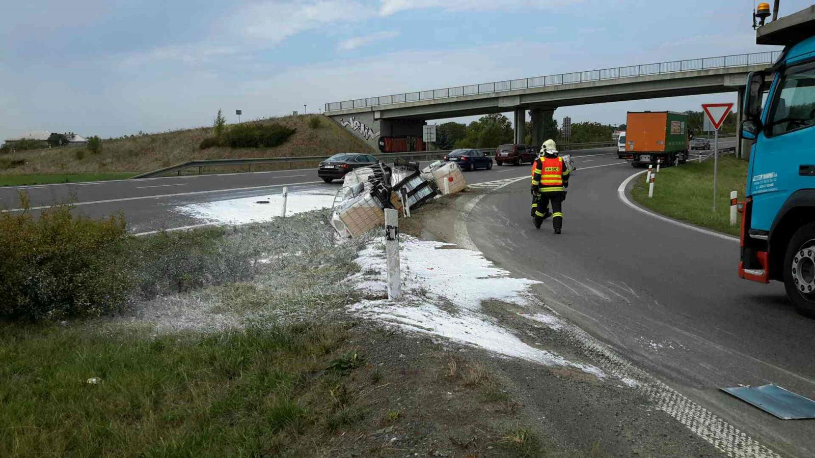 Na místo vyjeli profesionální hasiči z Lipníku nad Bečvou a Přerova, kteří po příjezdu zjistili, že z nákladního automobilu, který převážel několik kubíkových barelů, se za jízdy devět uvolnilo a spadlo jak na komunikaci, tak do příkopy. Barely se pádem poškodily a převážená látka unikala ven. Podle přepravních dokumentů by látka neměla být nebezpečná pro zdraví obyvatel ani pro životní prostředí a mělo by se jednat o druh lepidla.