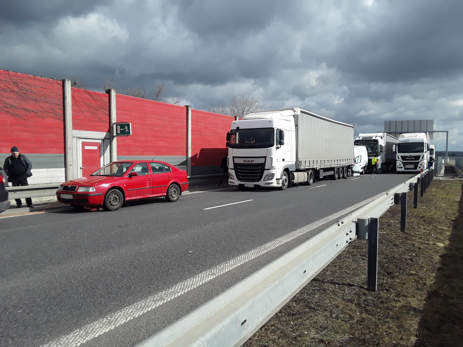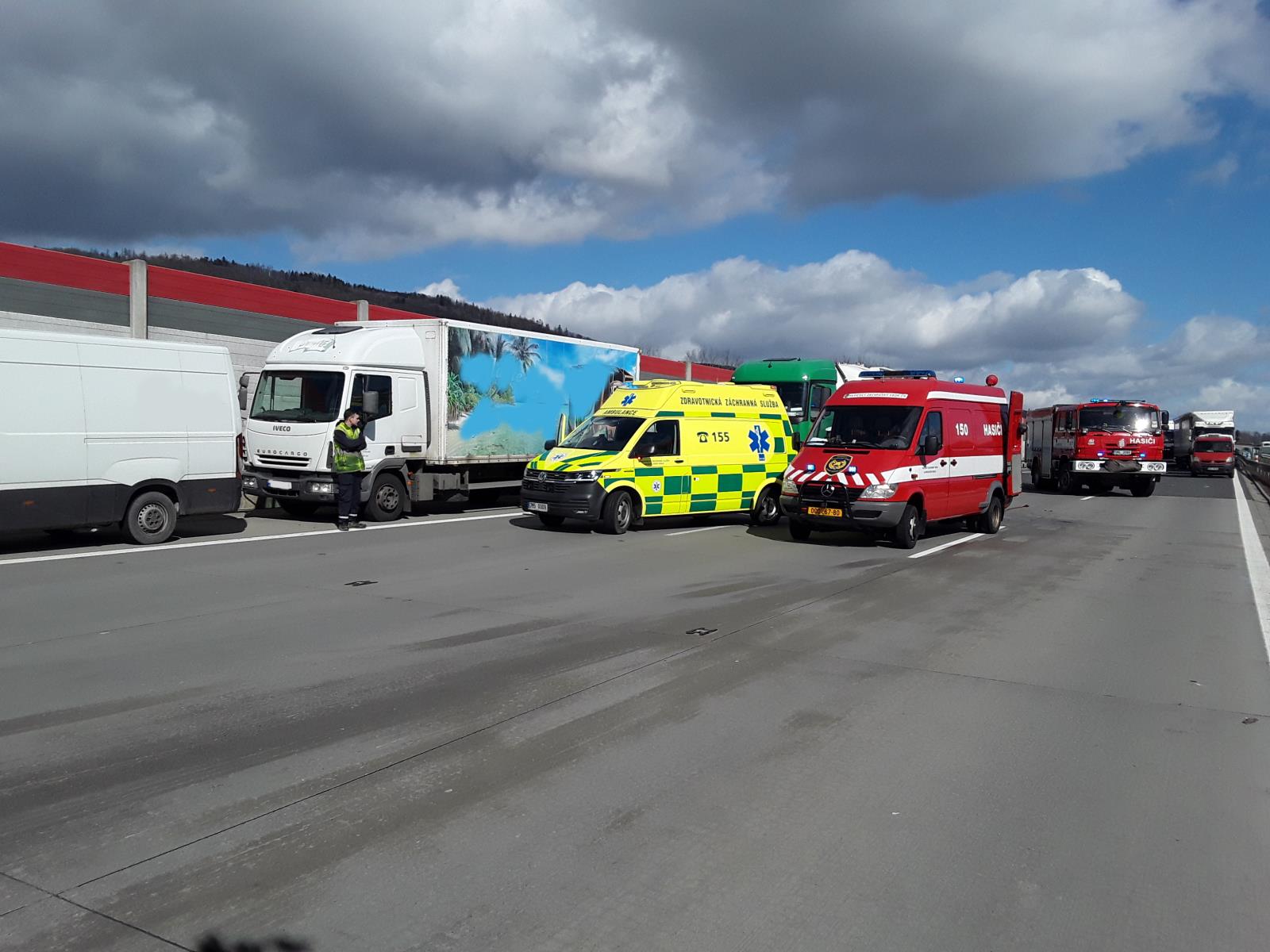 Ve čtvrtek 16. března jsme na D1 u Lipníku nad Bečvou nezasahovali poprvé. Hraničtí hasiči zde řešili nehodu již dopoledne krátce před půl jedenáctou, zaměstnal je střet rovněž 2 kamionů a dodávky. Tato kolize se obešla bez zranění. Zajistili jsme zde protipožární opatření, postarali jsme se o uniklé provozní kapaliny a úklid vozovky.